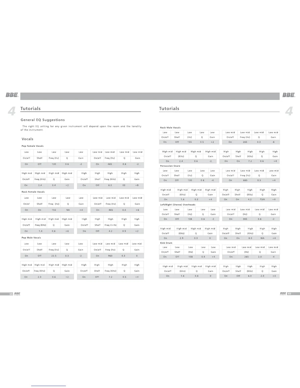 BBE MP24M - Tutorials: General and Instrument EQ; General EQ Suggestions; Instrument Specific EQ