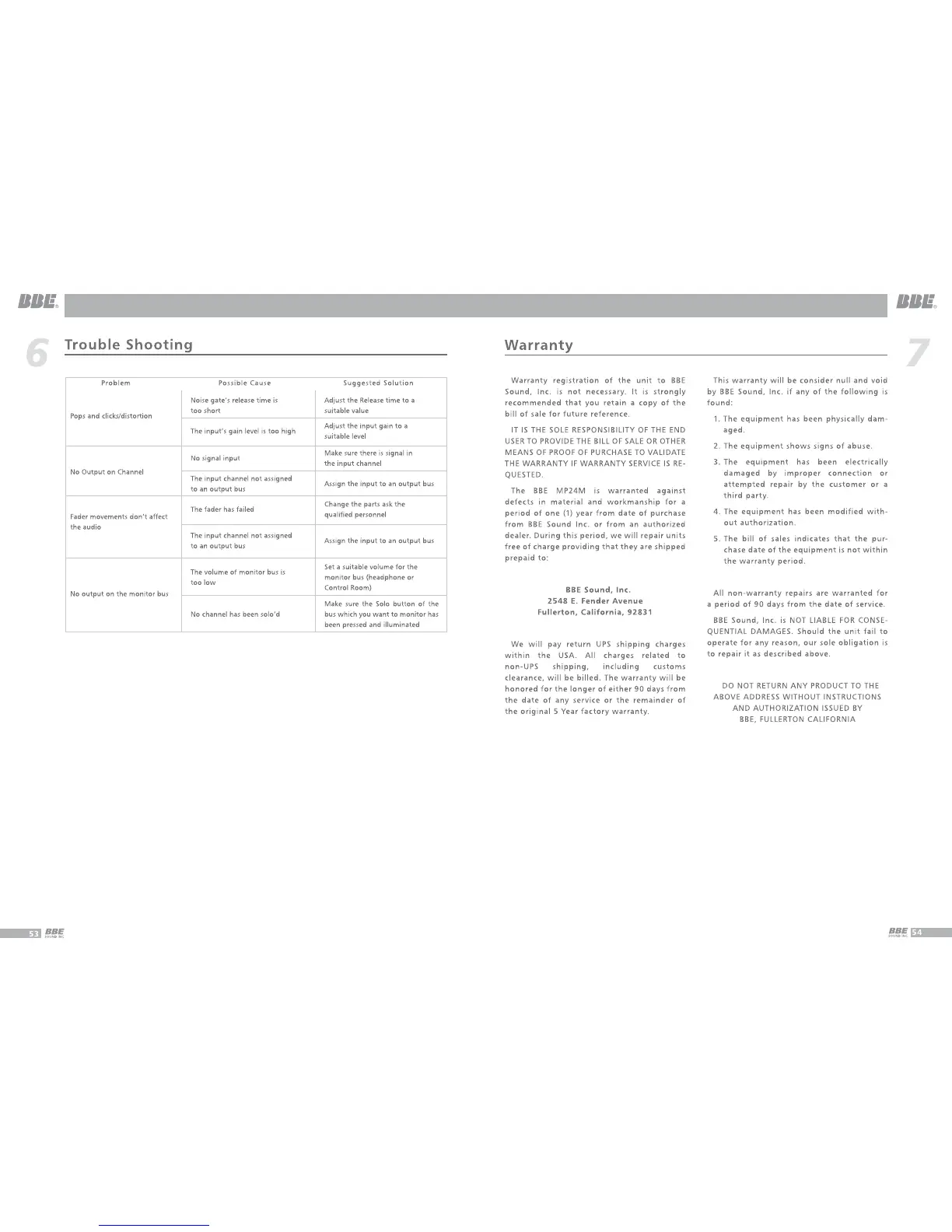 BBE MP24M - Troubleshooting; Common Troubleshooting Issues; Warranty Information; Warranty Service and Conditions