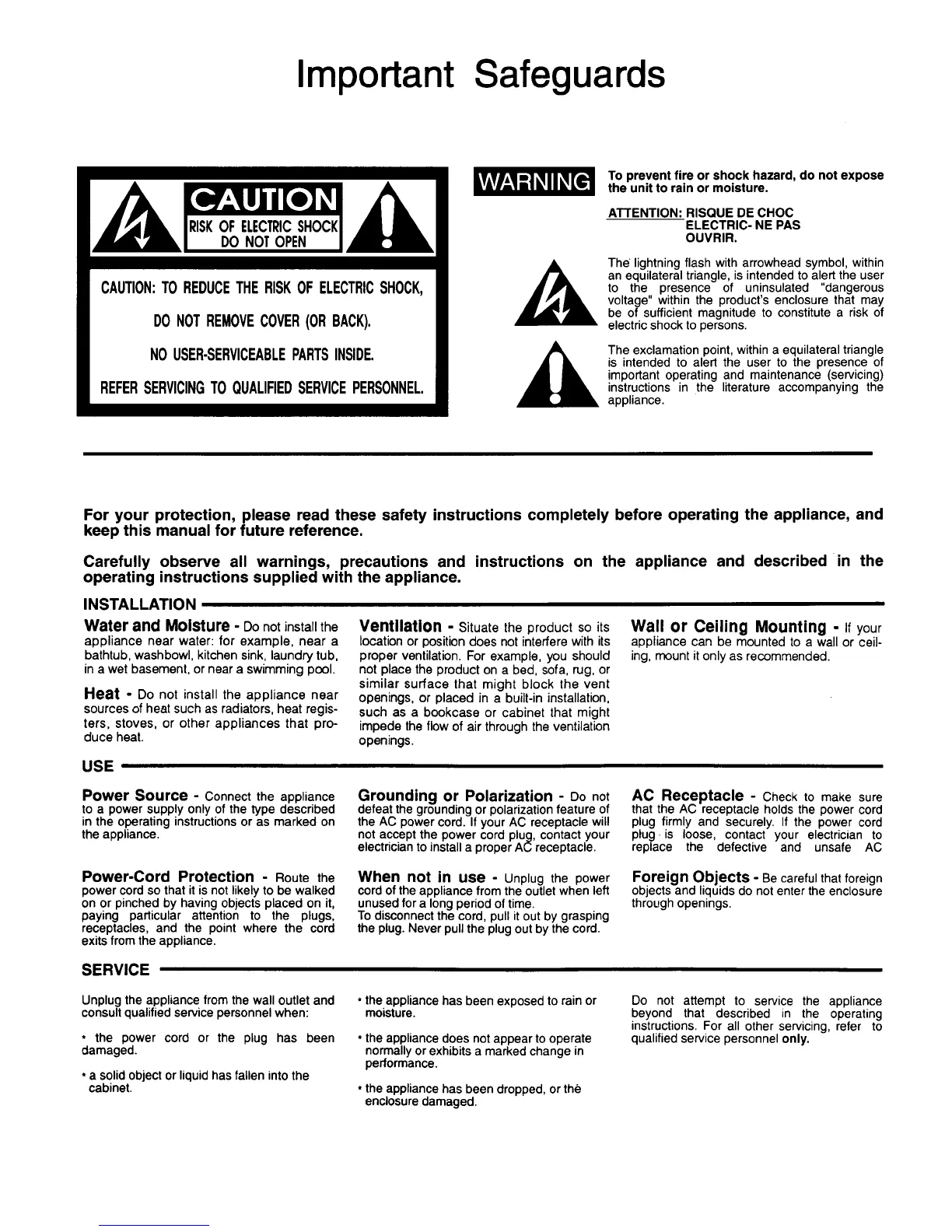 BBE Sonic Maximizer 1002 - Important Safeguards; Safe Installation; Safe Use; Safe Service