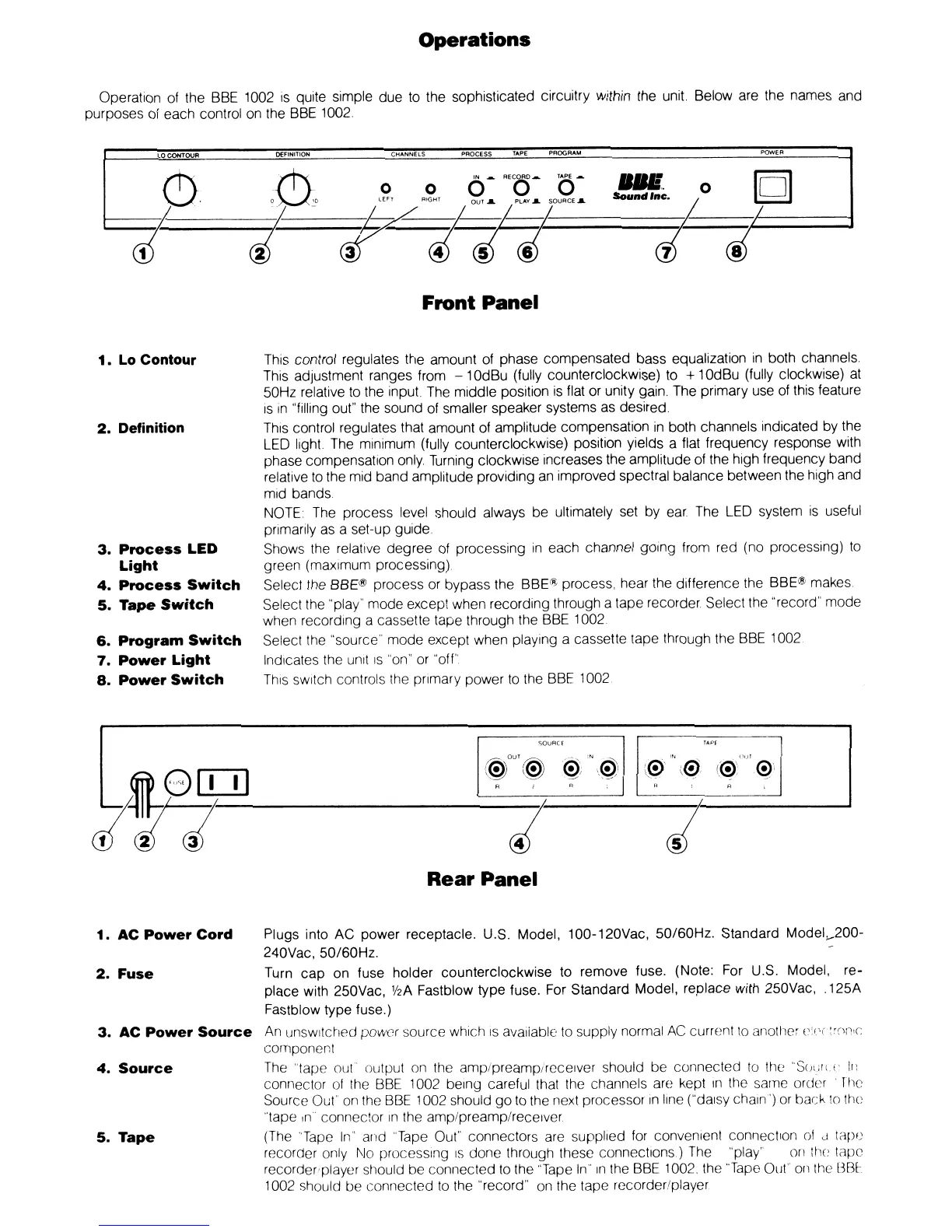 BBE Sonic Maximizer 1002 - Operations; Front Panel; Rear Panel; Product View