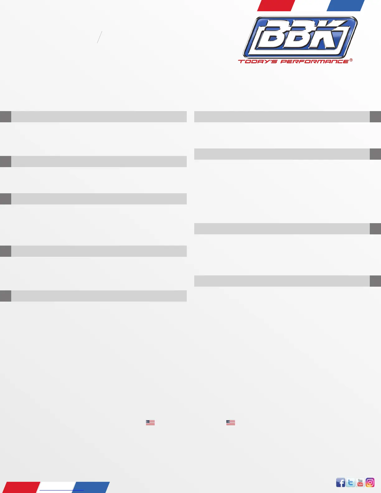 BBK Performance Inc. accepts no responsibility for injuries or damage caused by or during the installation of this product.