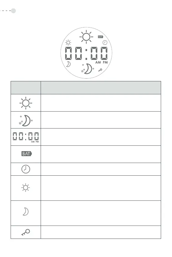 Indicador diurno: La pantalla LCD mostrará el icono de sol más