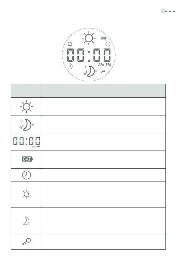 Indicador de período da noite: O ecrã LCD irá apresentar o