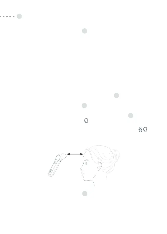 3. Beim Messen der Temperatur eines Erwachsenen das Gerät durch
