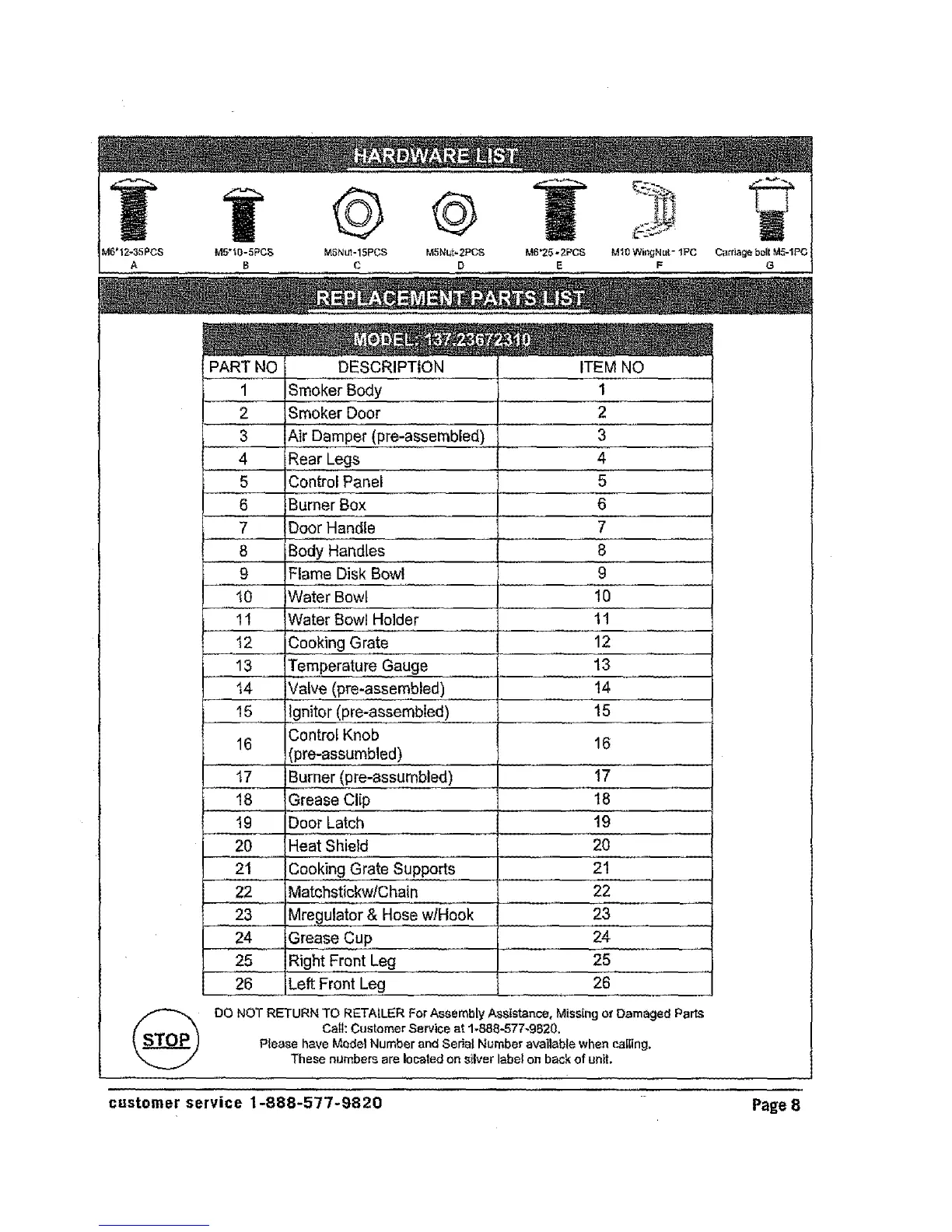 customer service 1-888-577-9820 Page 8