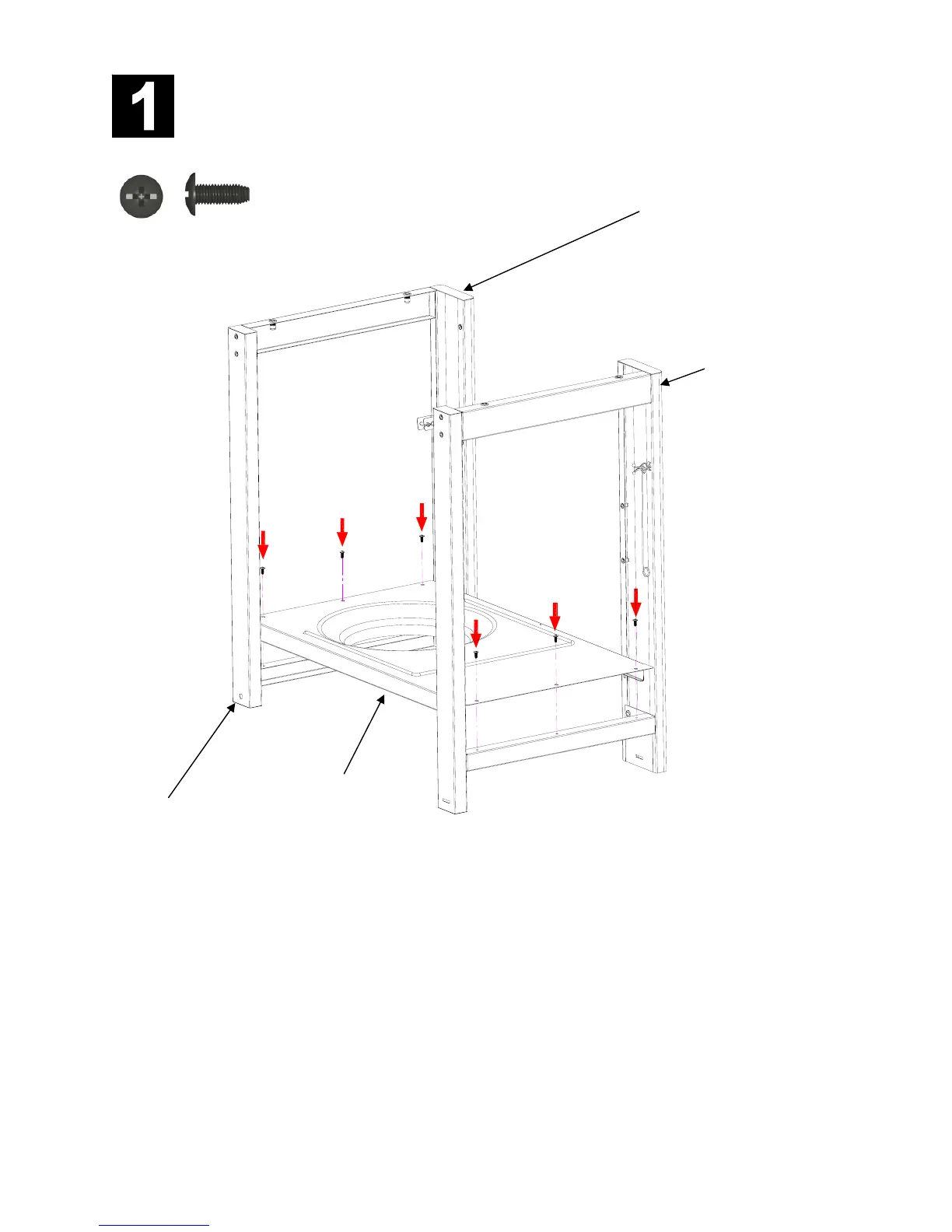 los agujeros del eje. Adjuntar a las Asambleas de la pierna derecha e izquierda con los dos tornillos