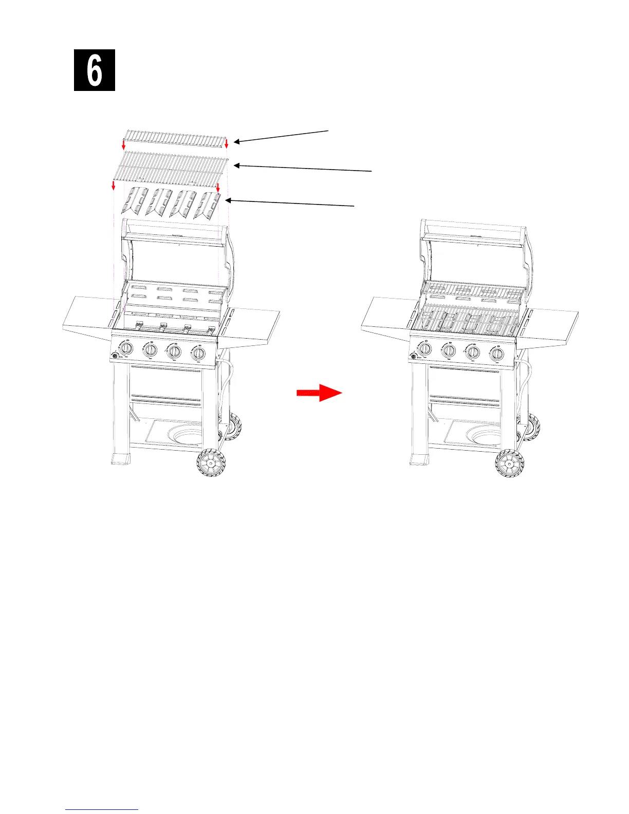□ Coloque rejillas para cocinar sobre la parrilla descansa.