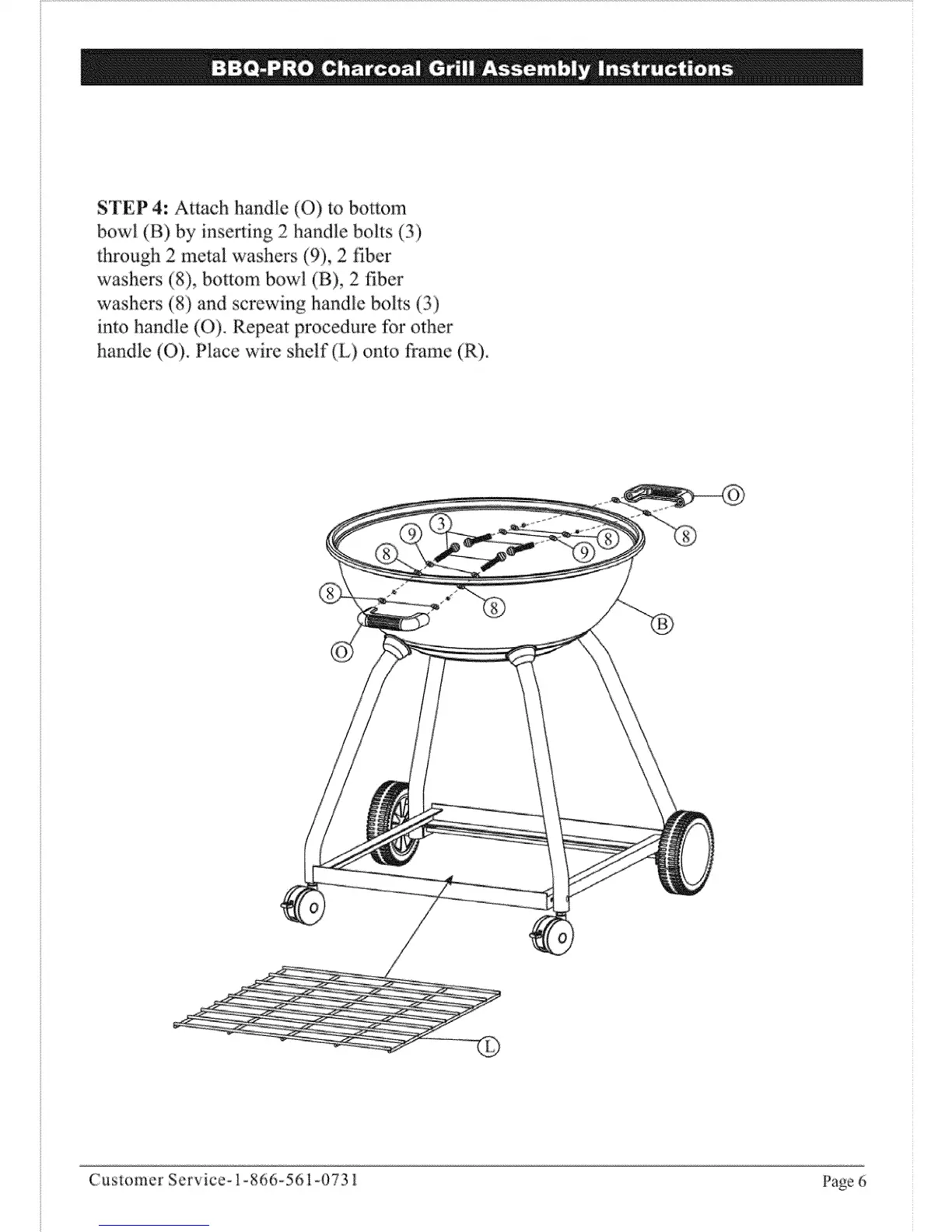 handle (O). Place wire shelf (L)omo f?ame (R).