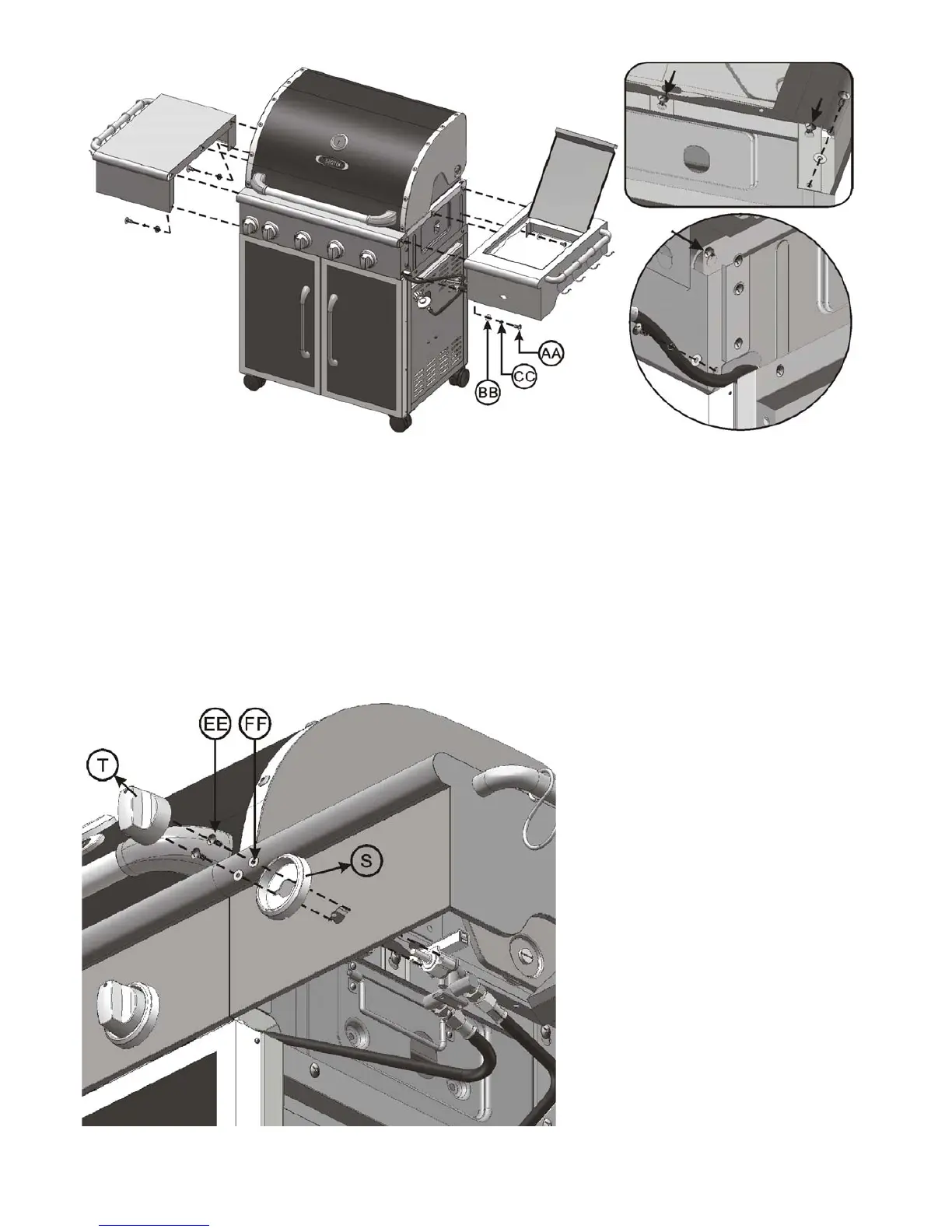 f) Insert one bolt (AA) with one spring washer (CC) and one flat washer (BB) into each pre-drilled holes.