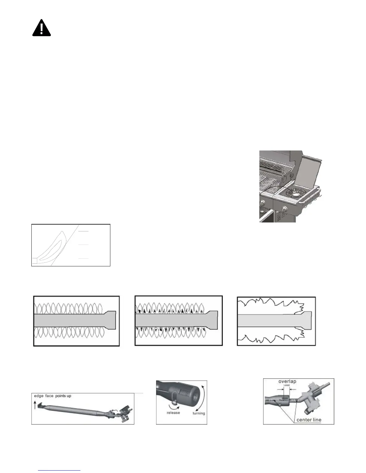 Confirm that the burner is properly lit and that the flame pattern is as desired (see fig. A, B and C below for the proper flame