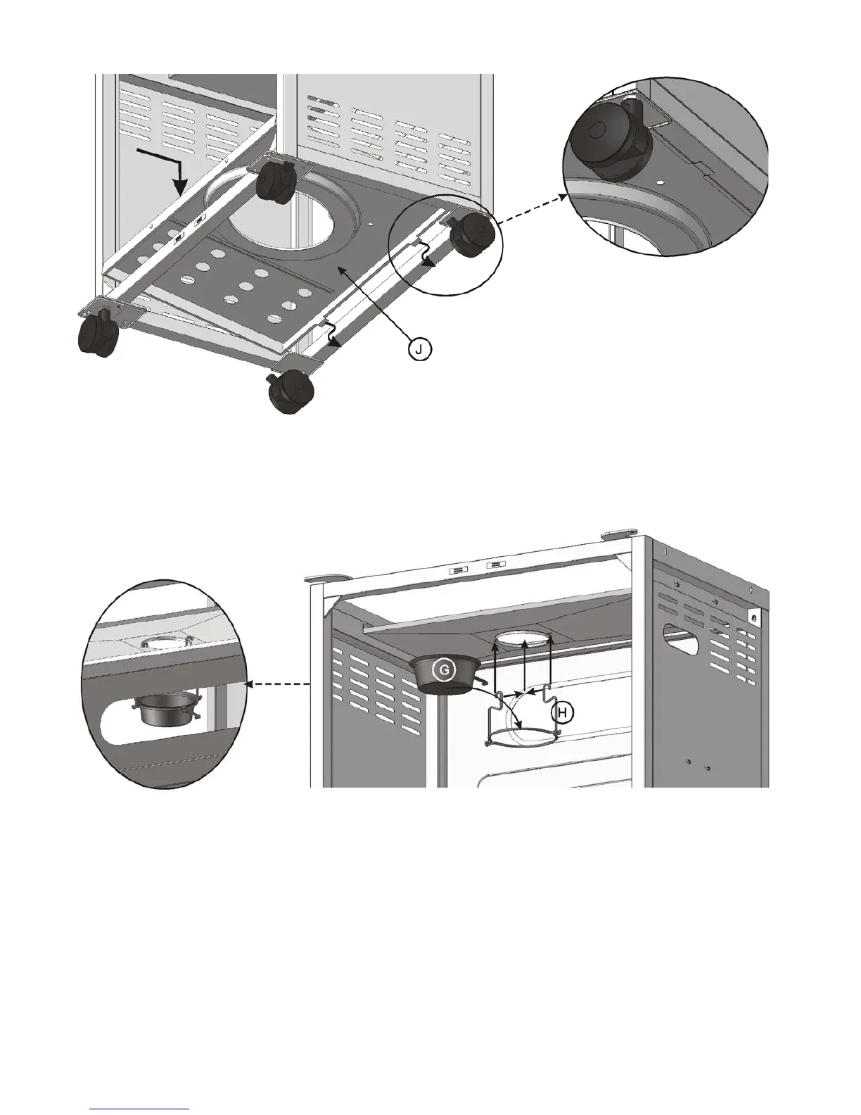a) Hook the grease cup support (H) into the two holes on the heat insulation panel.