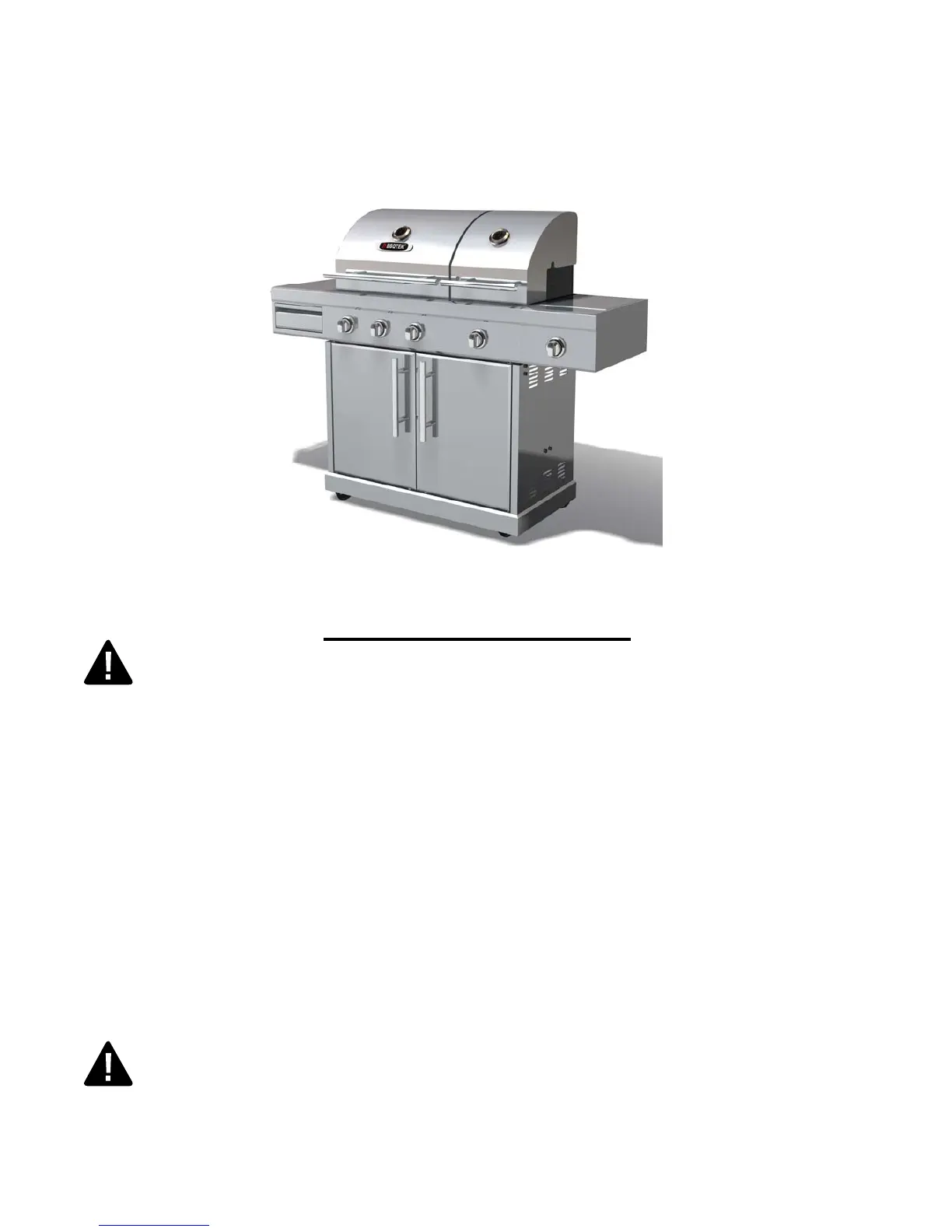 The pressure regulator and hose assembly supplied with the outdoor cooking gas appliance must be used. Replacement