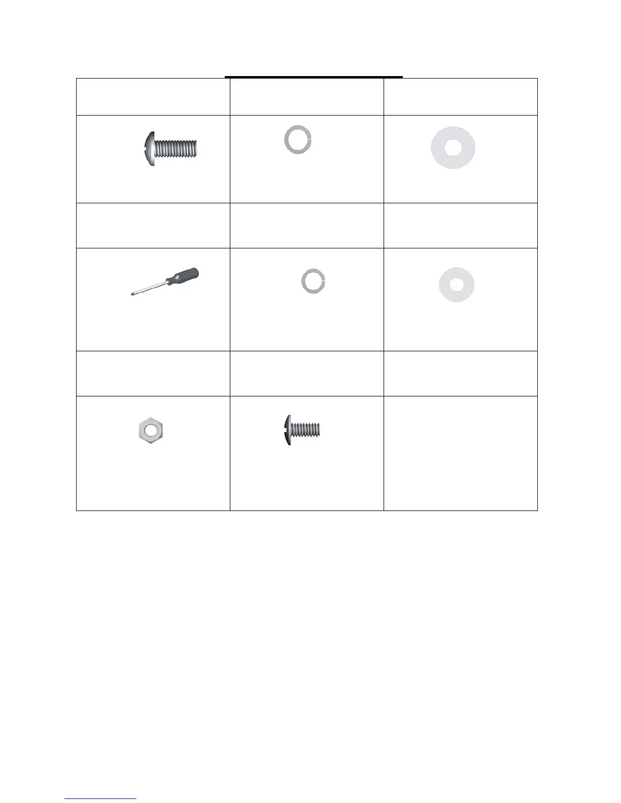 Hardware listed above is not scaled to exact size.