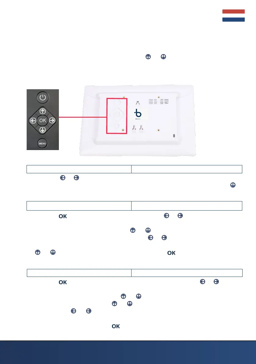 Druk op de of om de gewenste taal in te stellen: Nederlands, Duits, Frans,