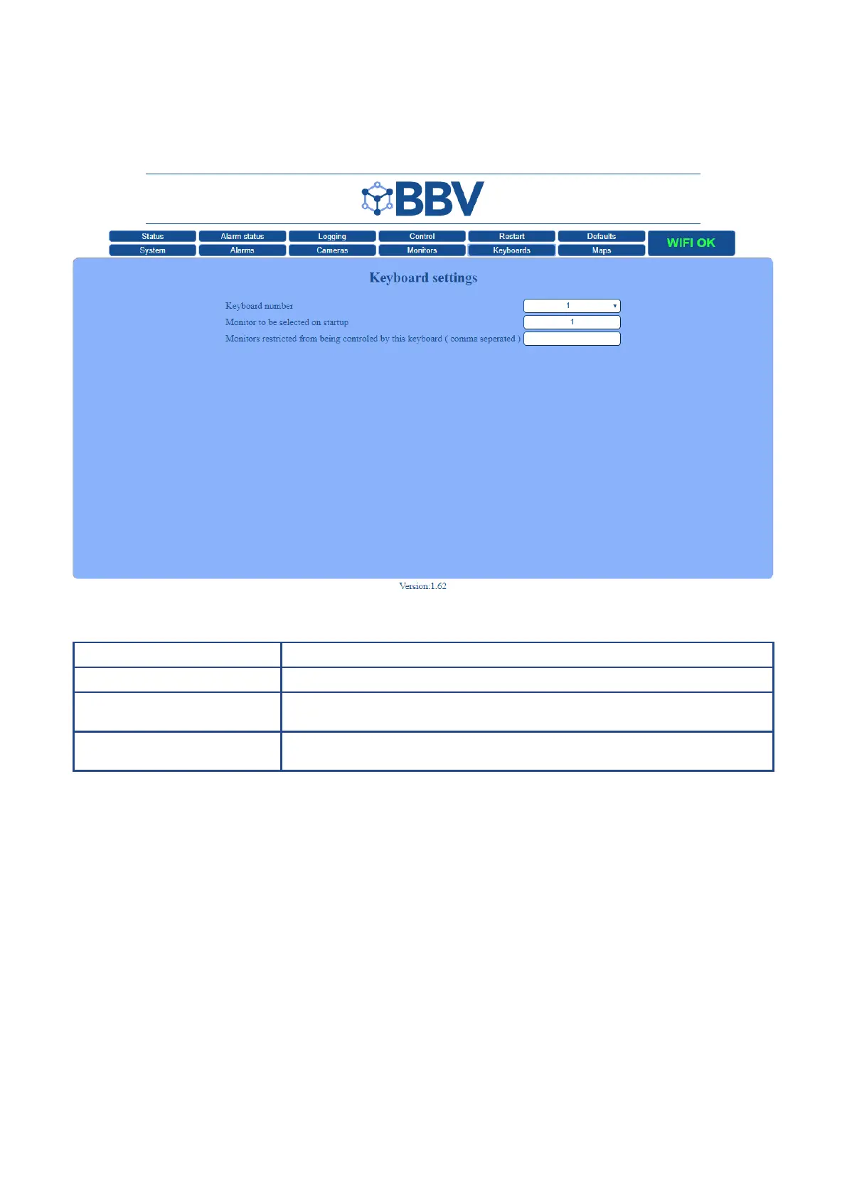 Keyboard Number Denes the keyboard that the settings are being applied to