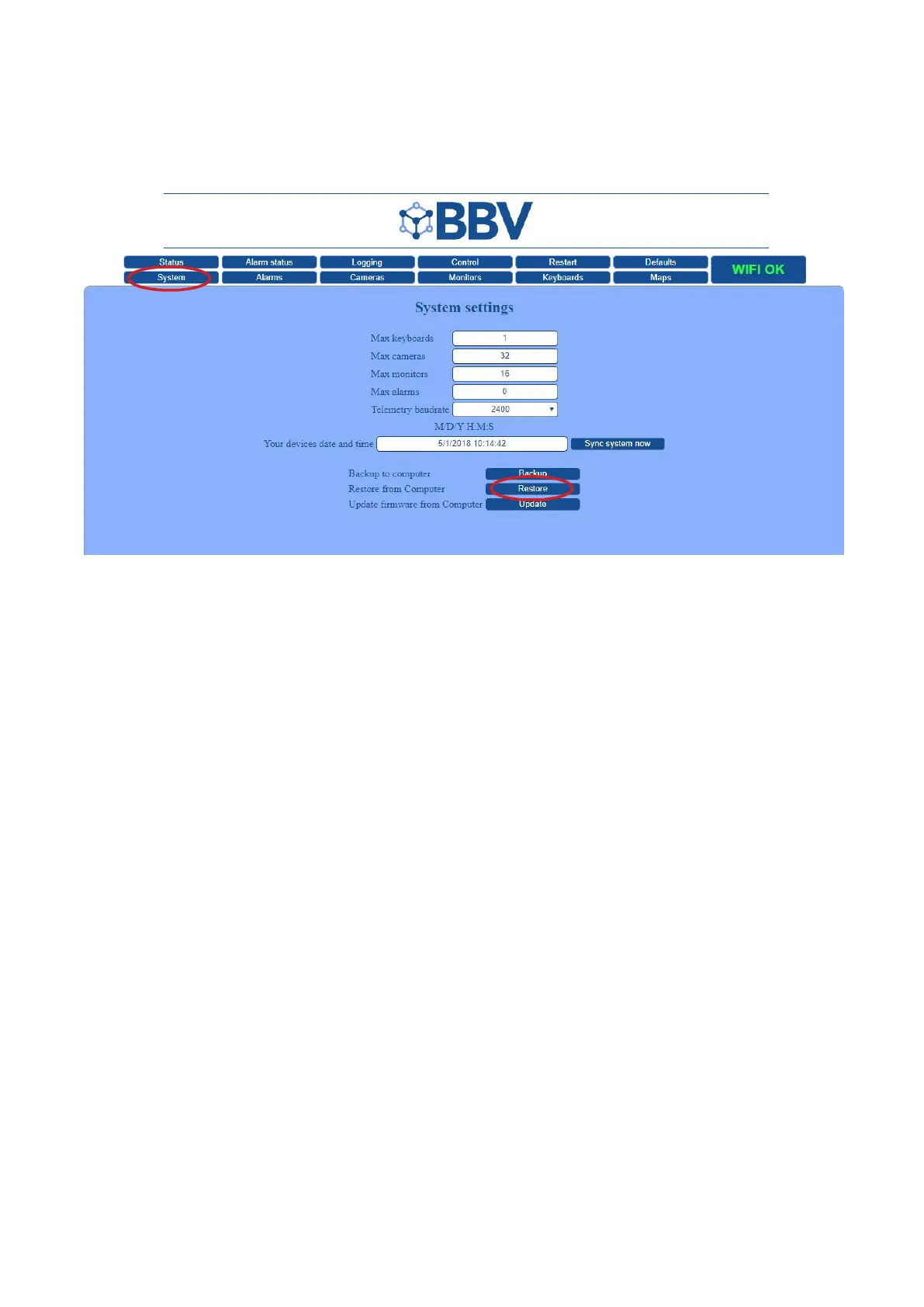 • Once your FBM User Interface has loaded, click the ‘System’ tab to enter the System Settings.