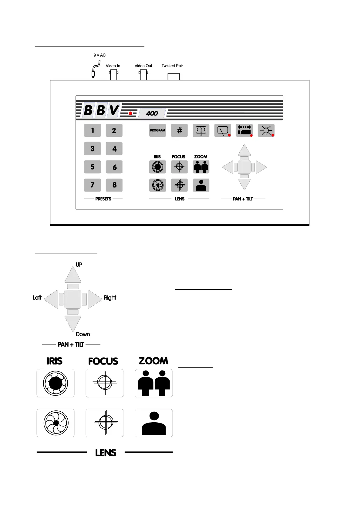 keypad. These are IRIS OPEN, IRIS CLOSE, FOCUS