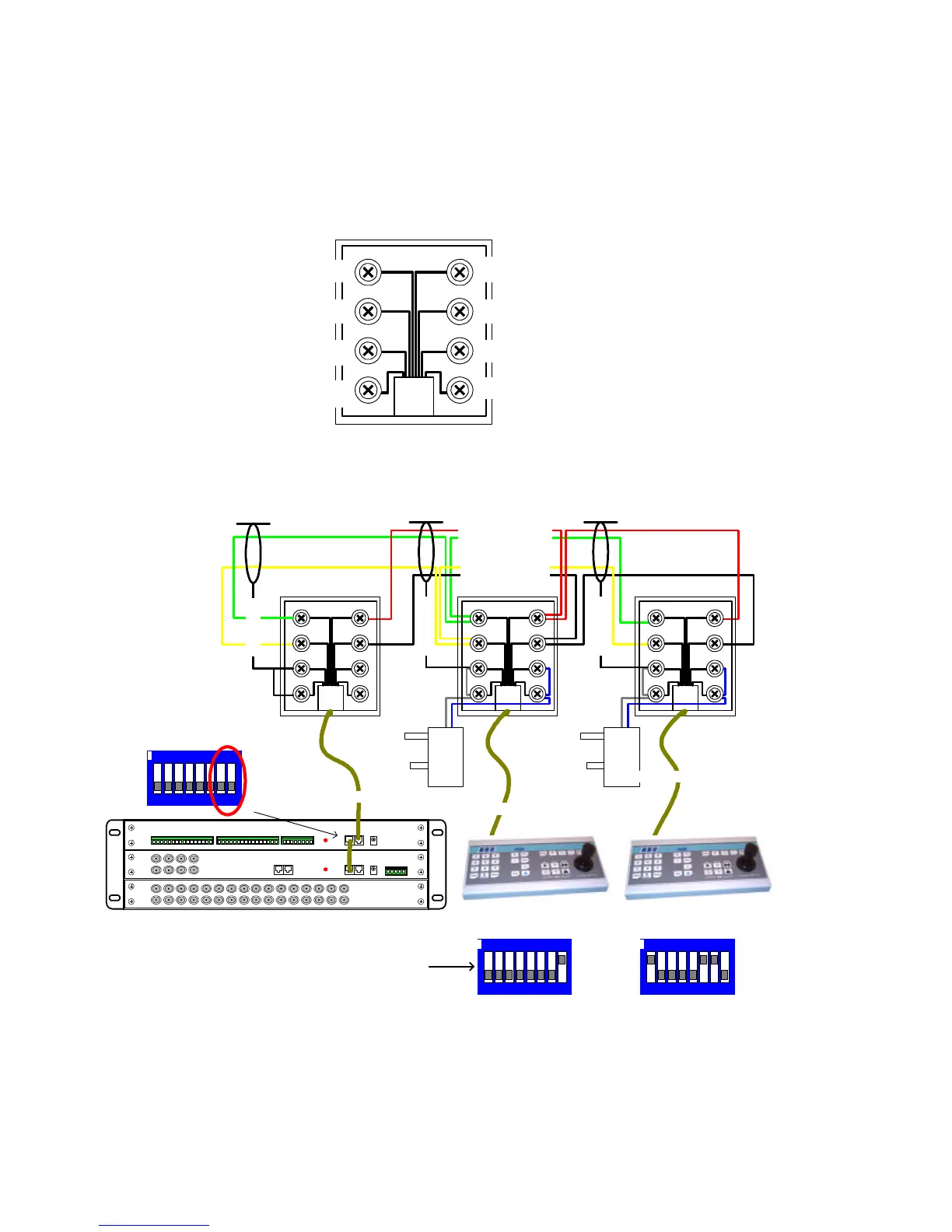 Keyboard 1 is not at the end of line so BBUS termination is OFF (switch 6,7 OFF). It is addressed as 1 and the