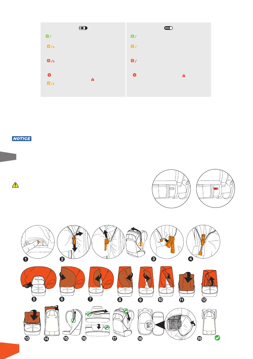 WARNING: The deflation button is equipped with an orange indicator to ensure that