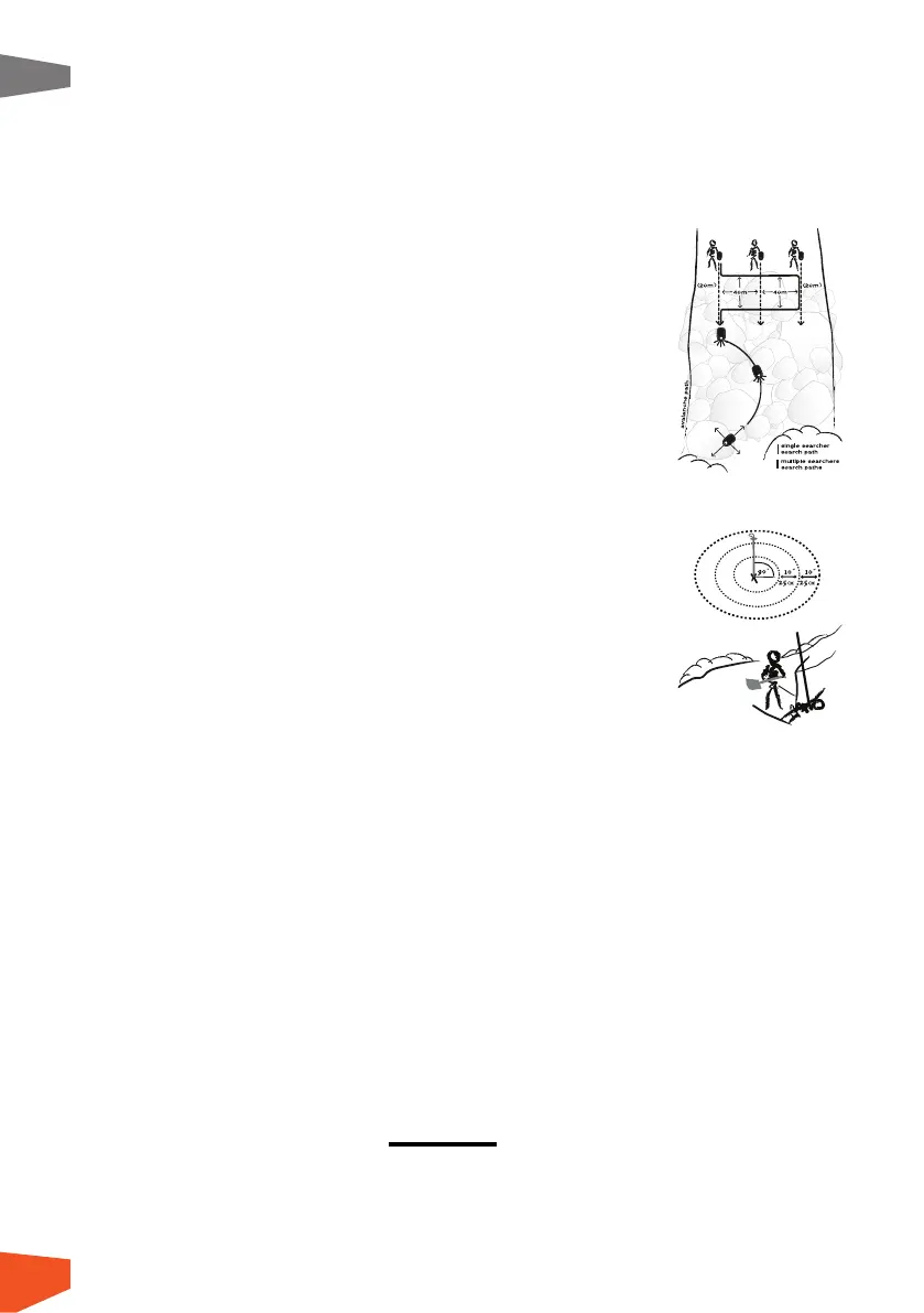 digging near the probe. In burials deeper than one meter, one person should dig near the probe with others downhill,