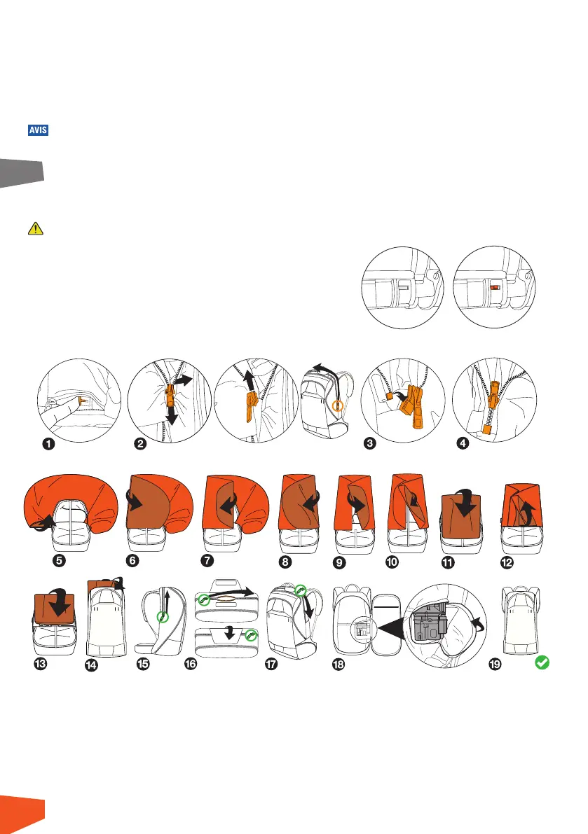 pour dégonfler l’airbag. Une fois l’airbag dégonflé, les ressorts du couvercle de sécurité le ferment automatiquement.