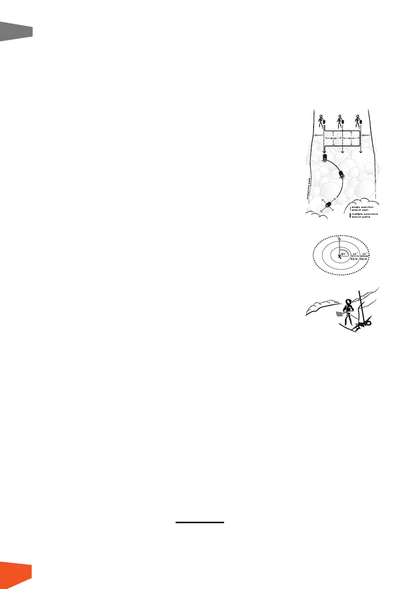 les ensevelissements dépassant un mètre, une personne devrait creuser près de la sonde et les autres en aval, pour