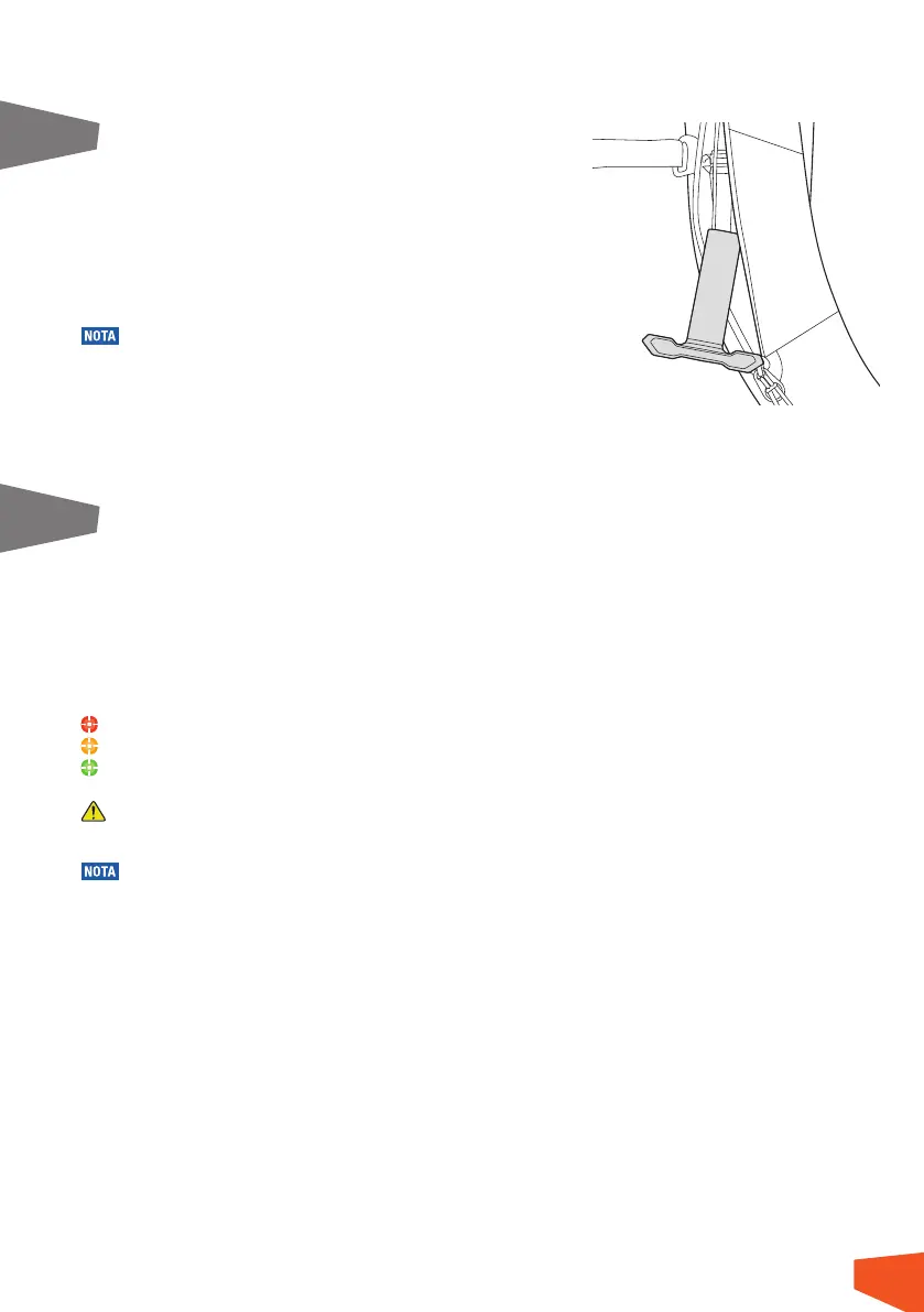 Arancione: carica media. Il livello di carica è sufficiente a eseguire il gonfiaggio completo dell’airbag, ma si hanno meno di 6 ore di autonomia.