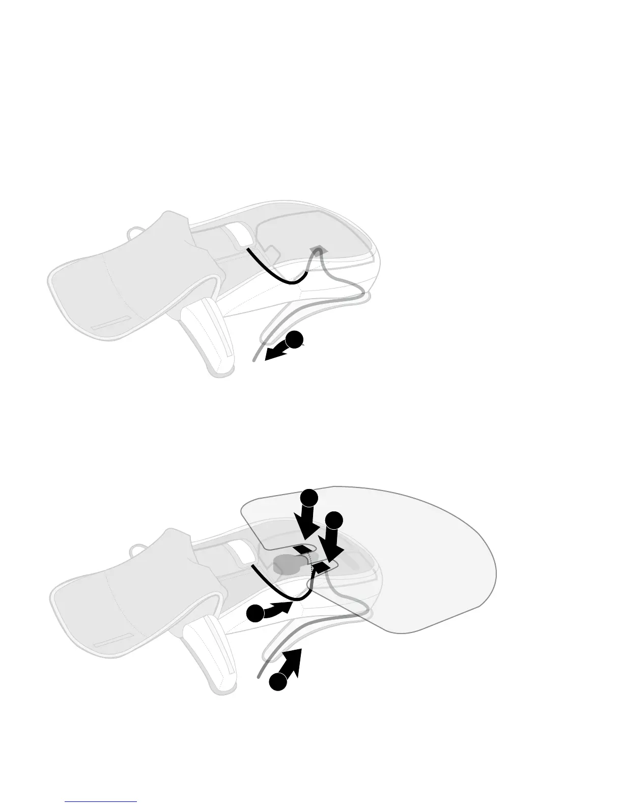 1. Starting at the shoulder strap zipper (a), thread the trigger cable, leading with the trigger cover,