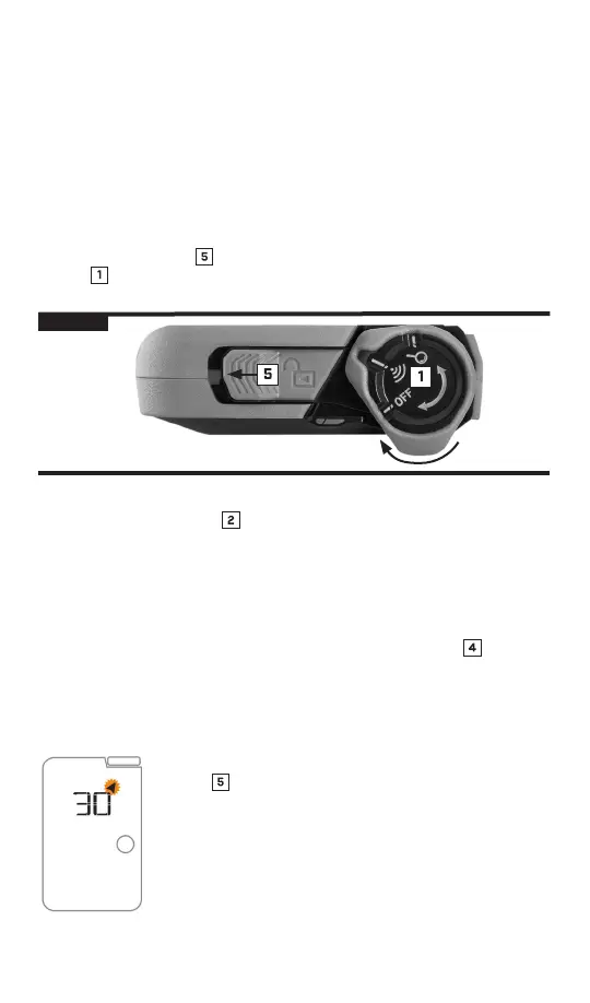 la pestaña de bloqueo en la dirección de la echa y gire la ruleta de