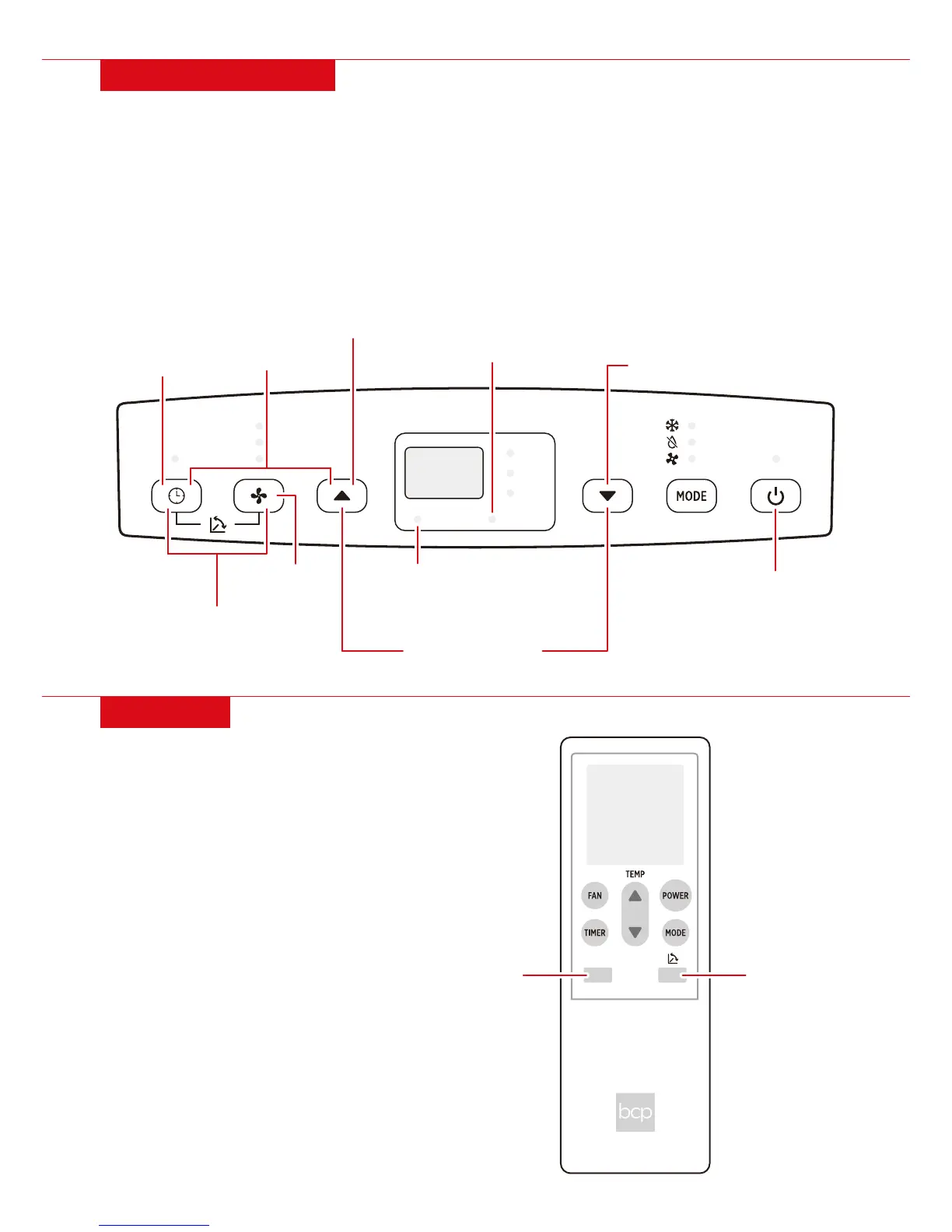 • MODE: Cycle between cool, dehumidify, and fan mode