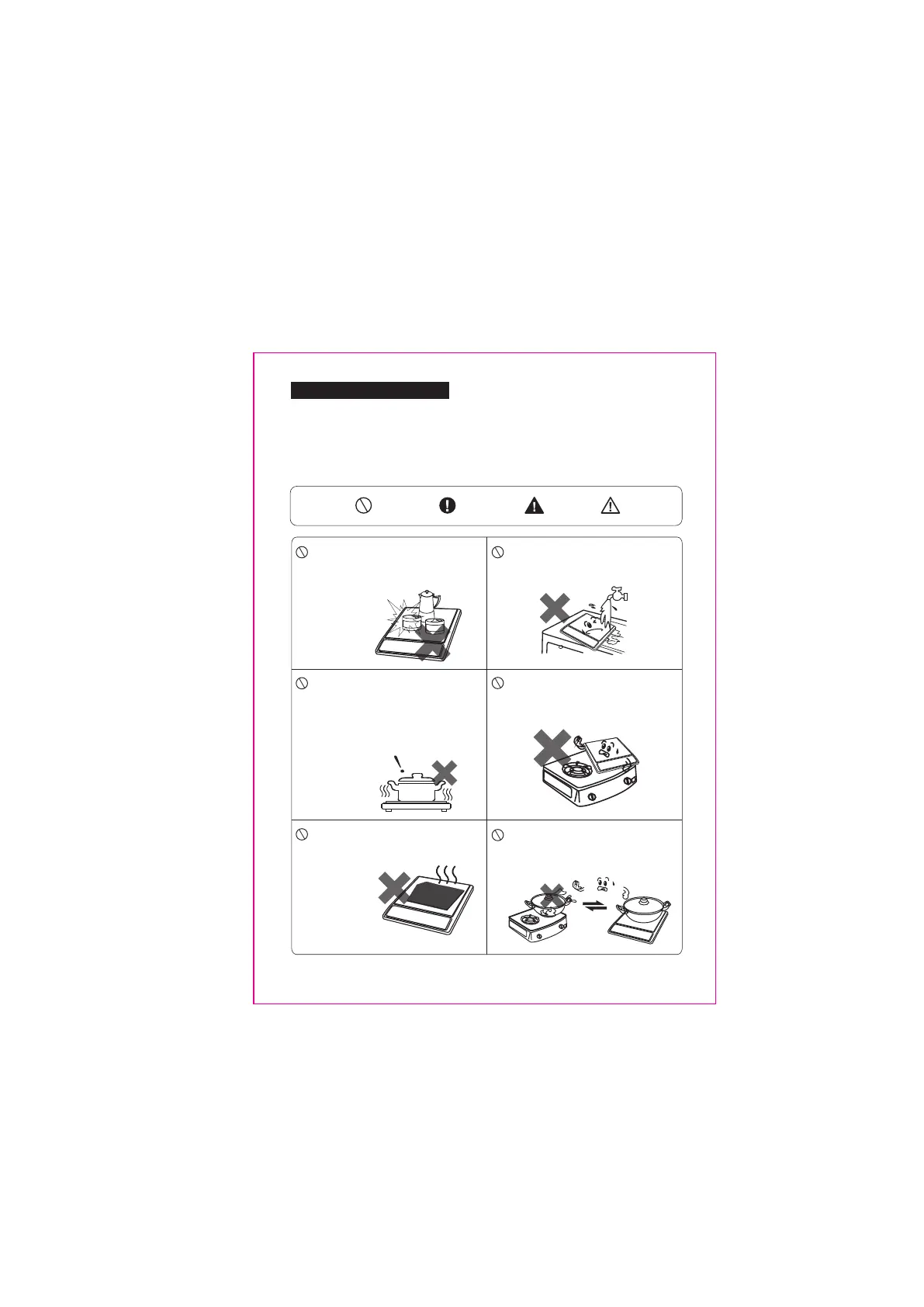 • Incompatible pots material: glass, ceramic, aluminium, copper and other non