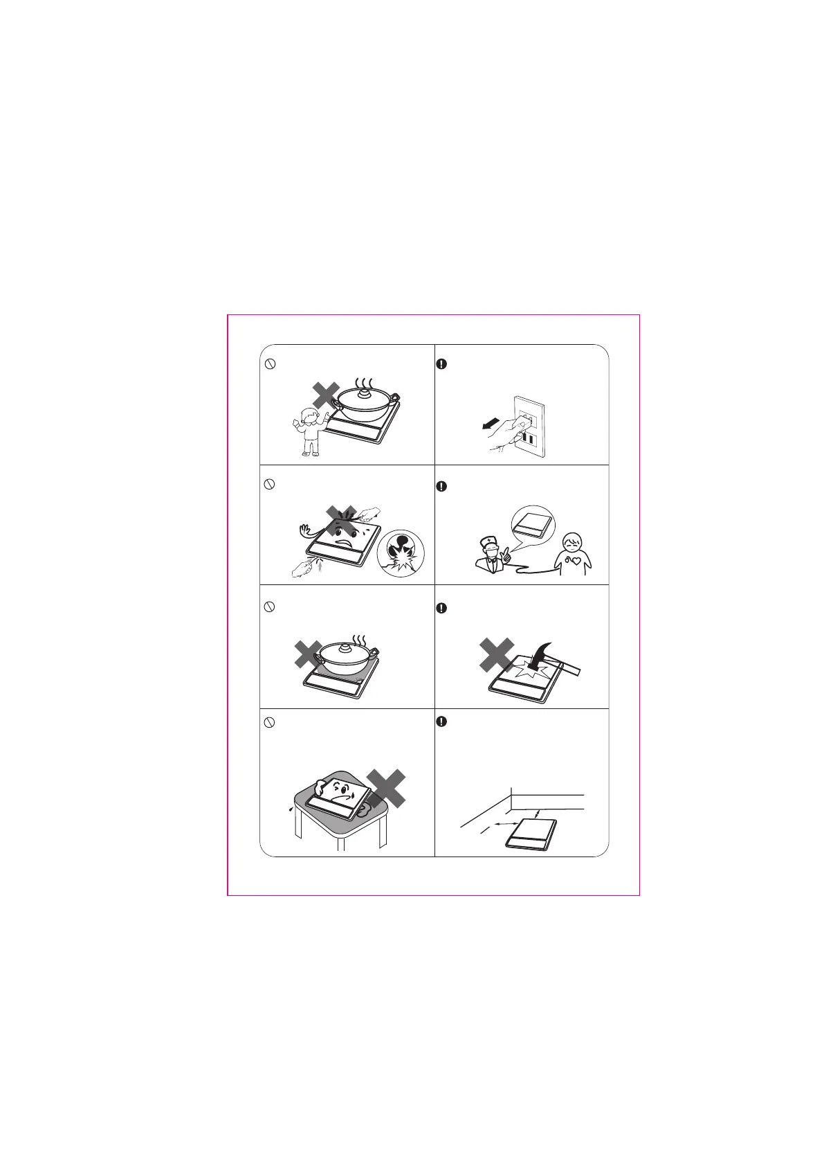 • Make sure the cookware which has food or liquid is placed in the center of ceramic