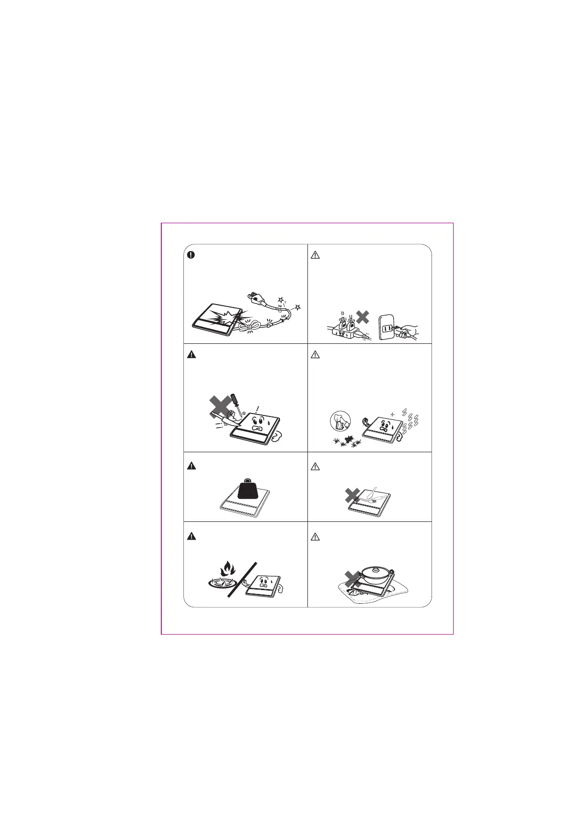 • Incompatible pots material: glass, ceramic, aluminium, copper and other non