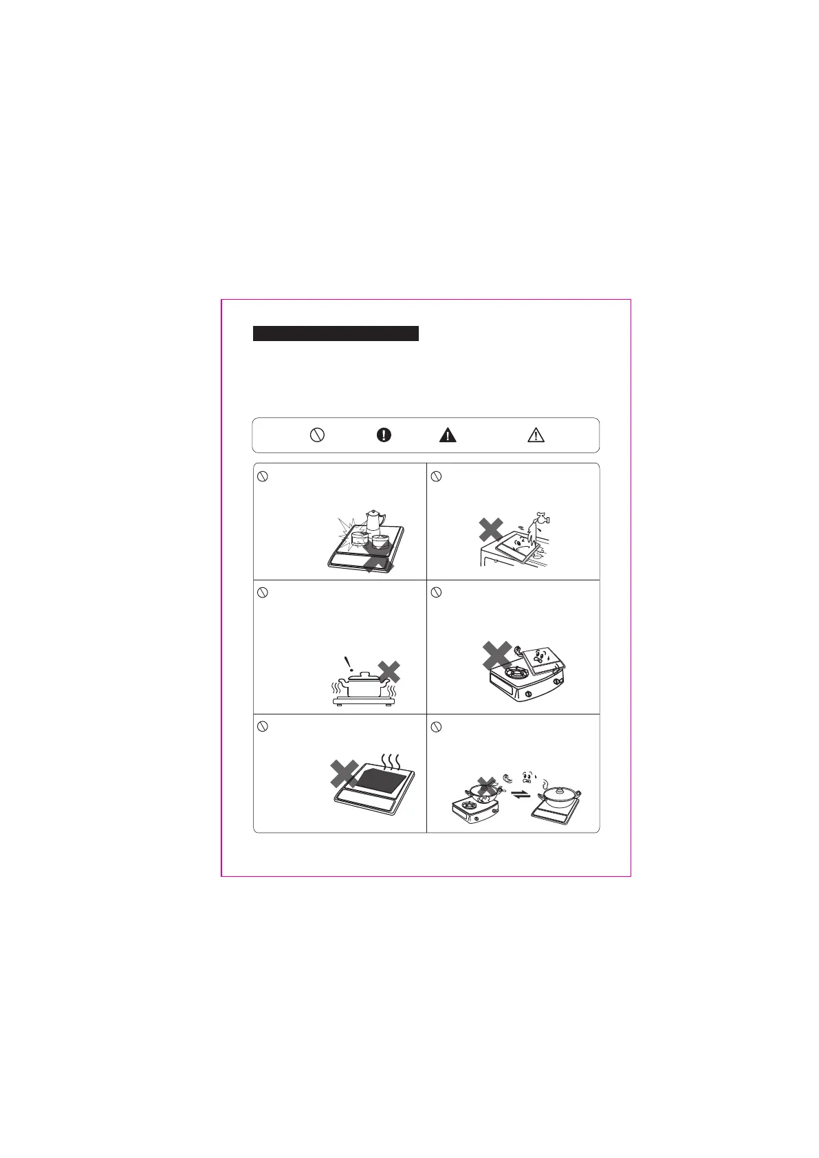 • Make sure the cookware which has food or liquid is placed in the center of ceramic