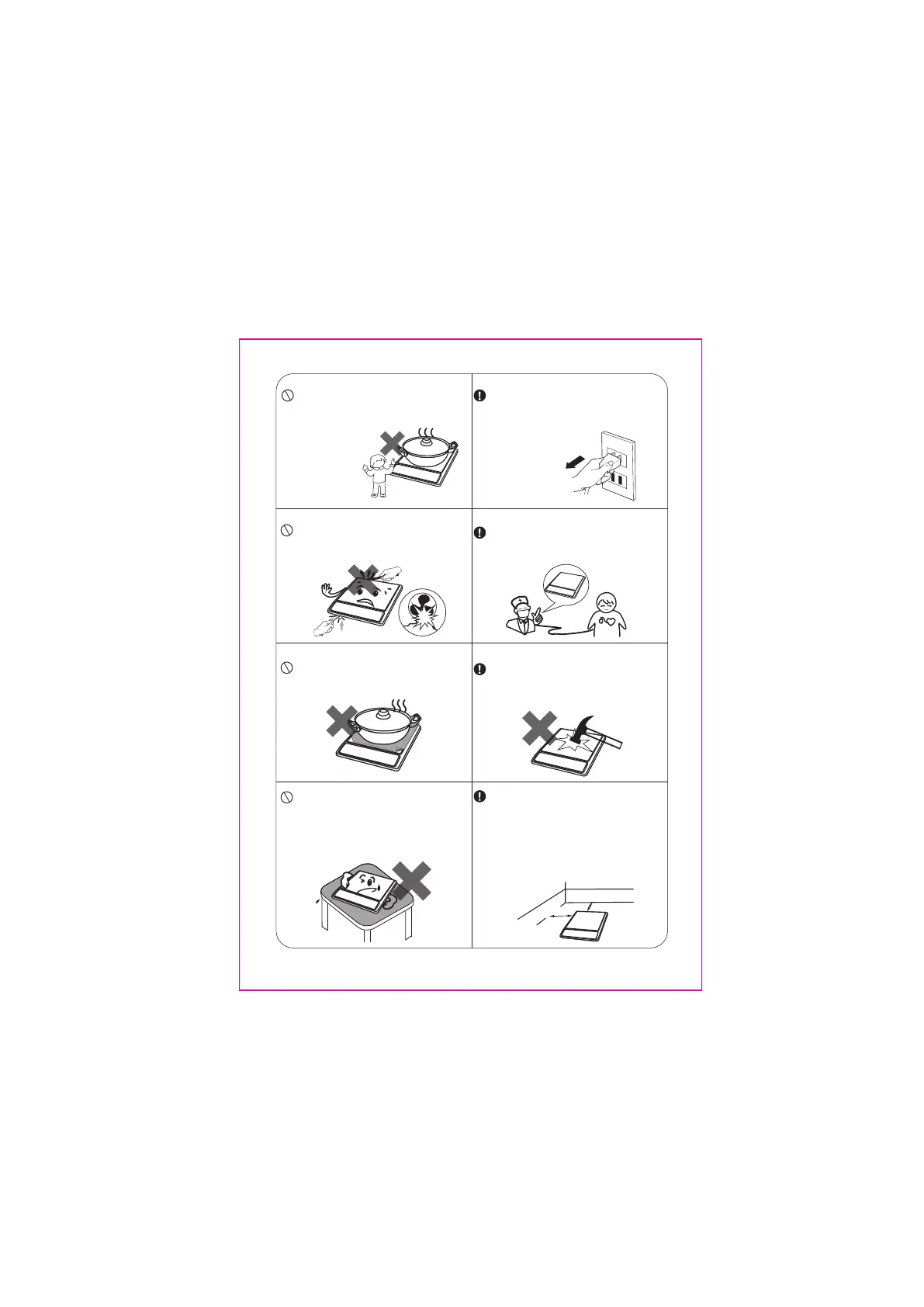 • Incompatible pots material: glass, ceramic, aluminium, copper and other non