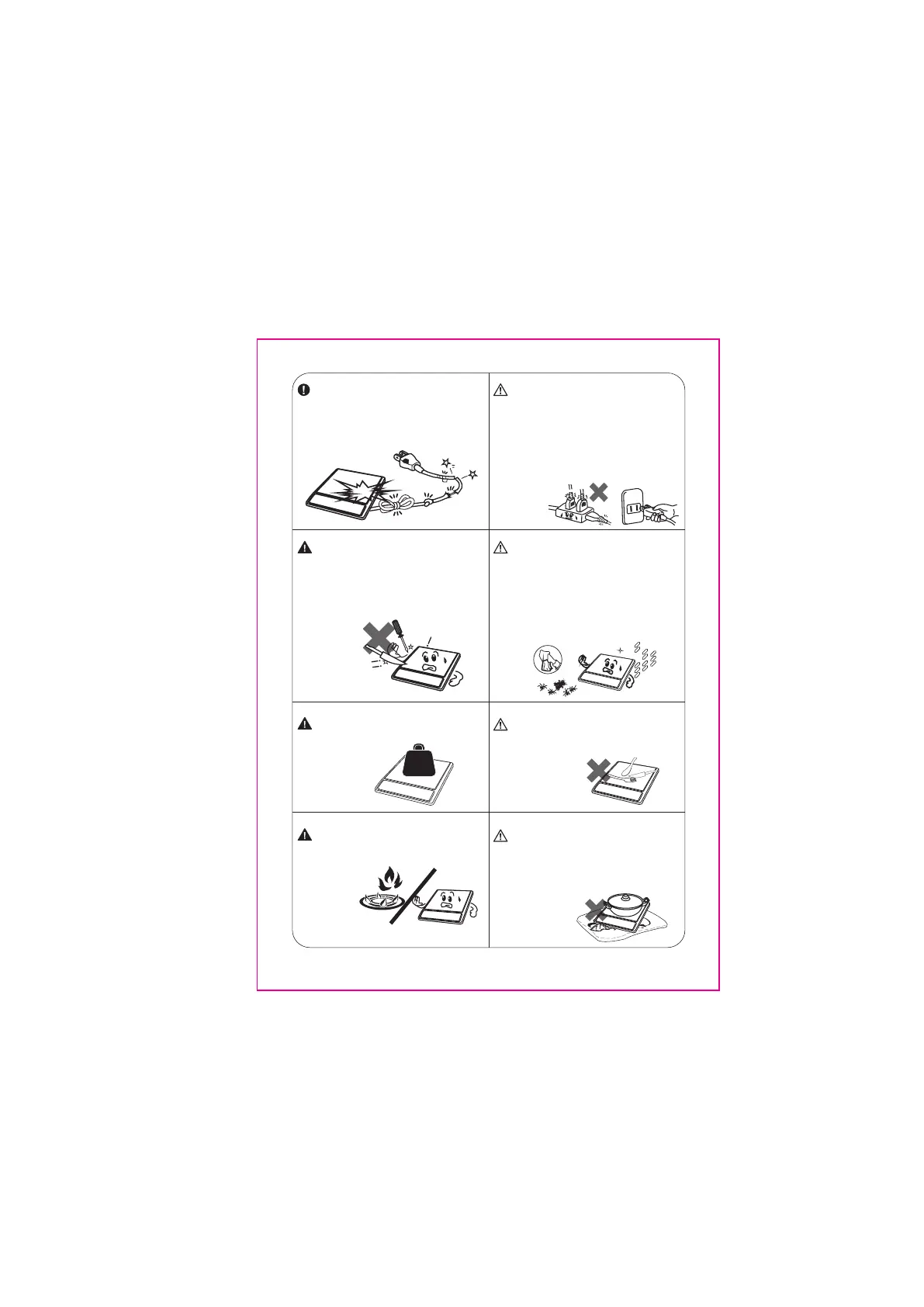• Incompatible pots material: glass, ceramic, aluminium, copper and other non