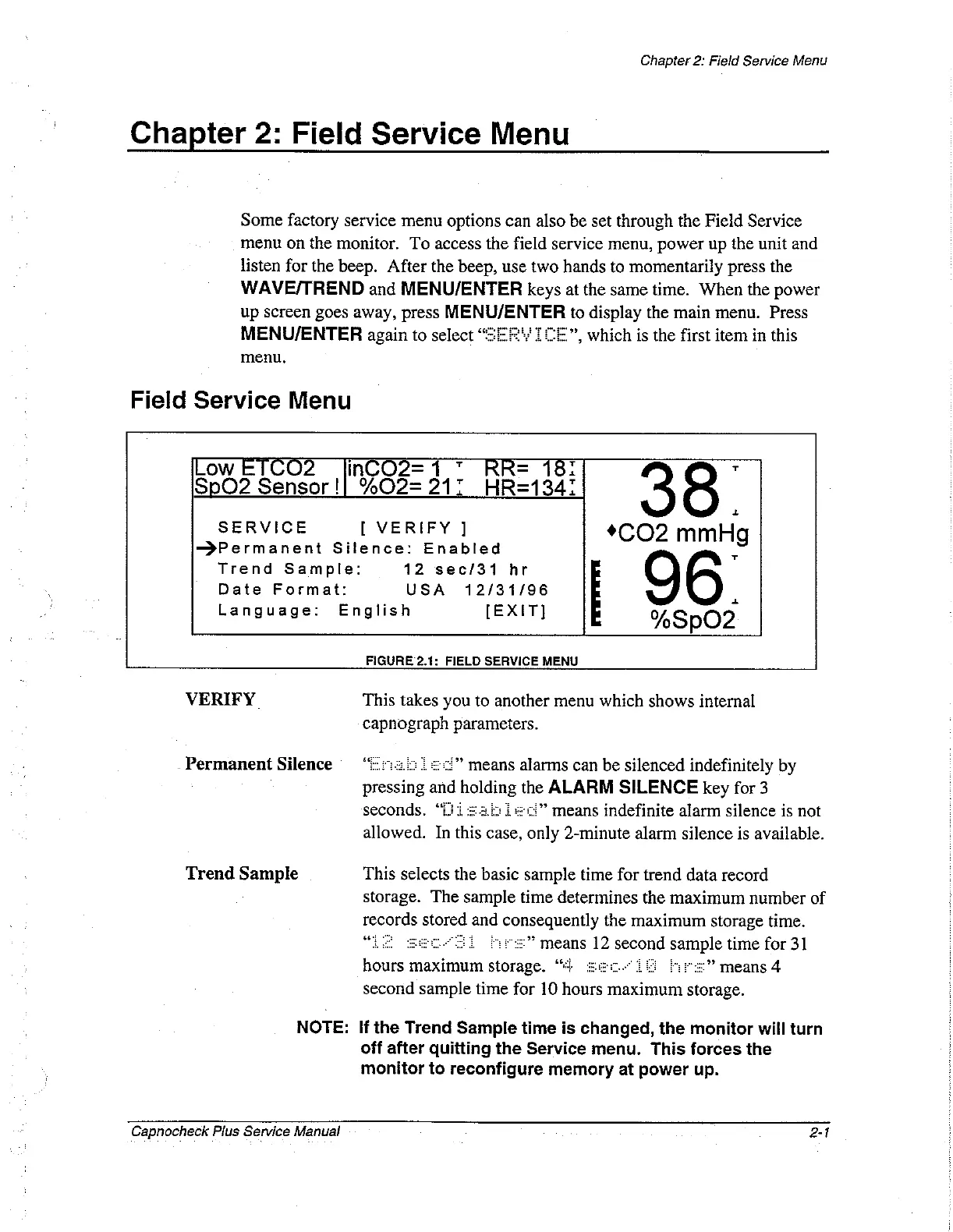 BCI Capnocheck Plus - Field Service Menu Operations; Accessing and Navigating Field Service Menu