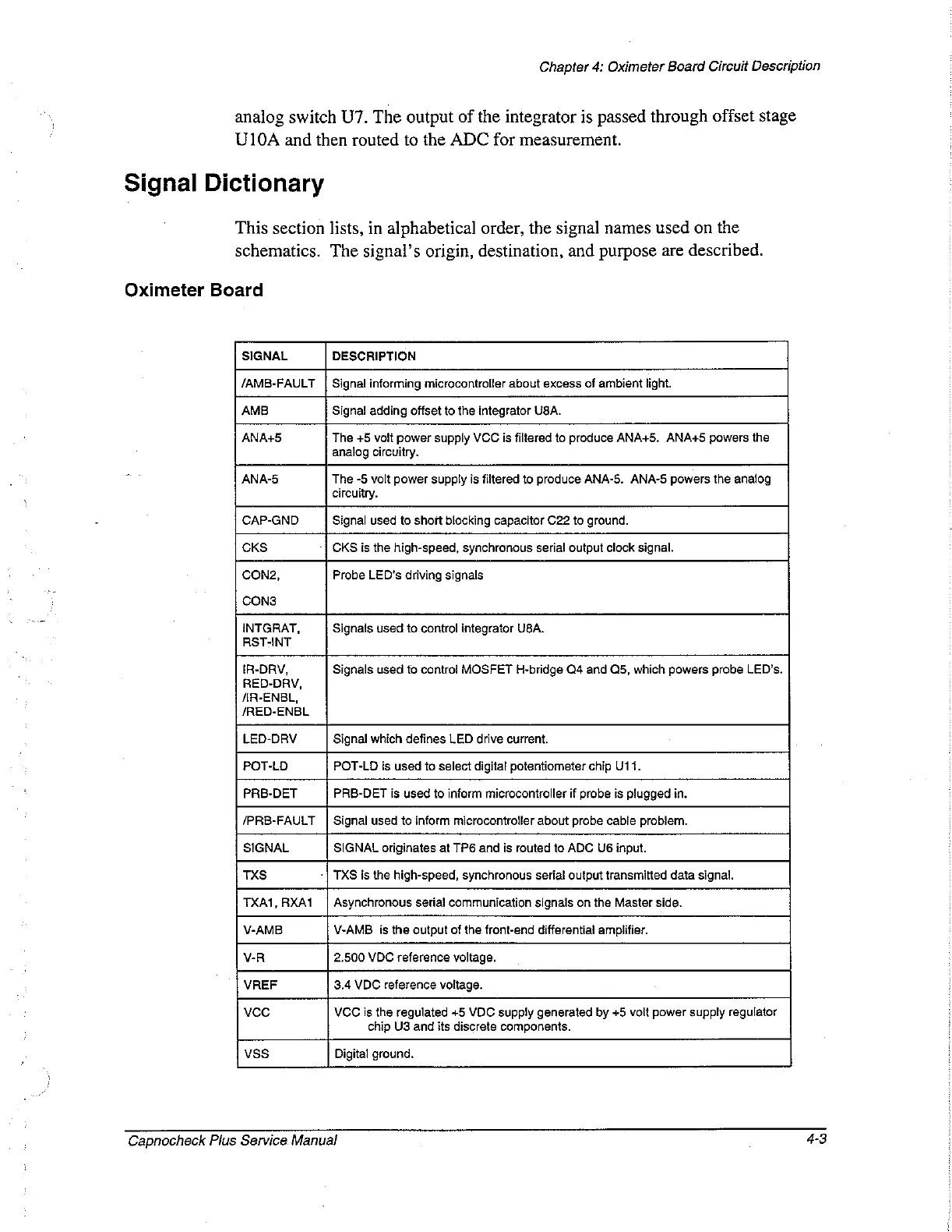 BCI Capnocheck Plus - Oximeter Board Signal Dictionary