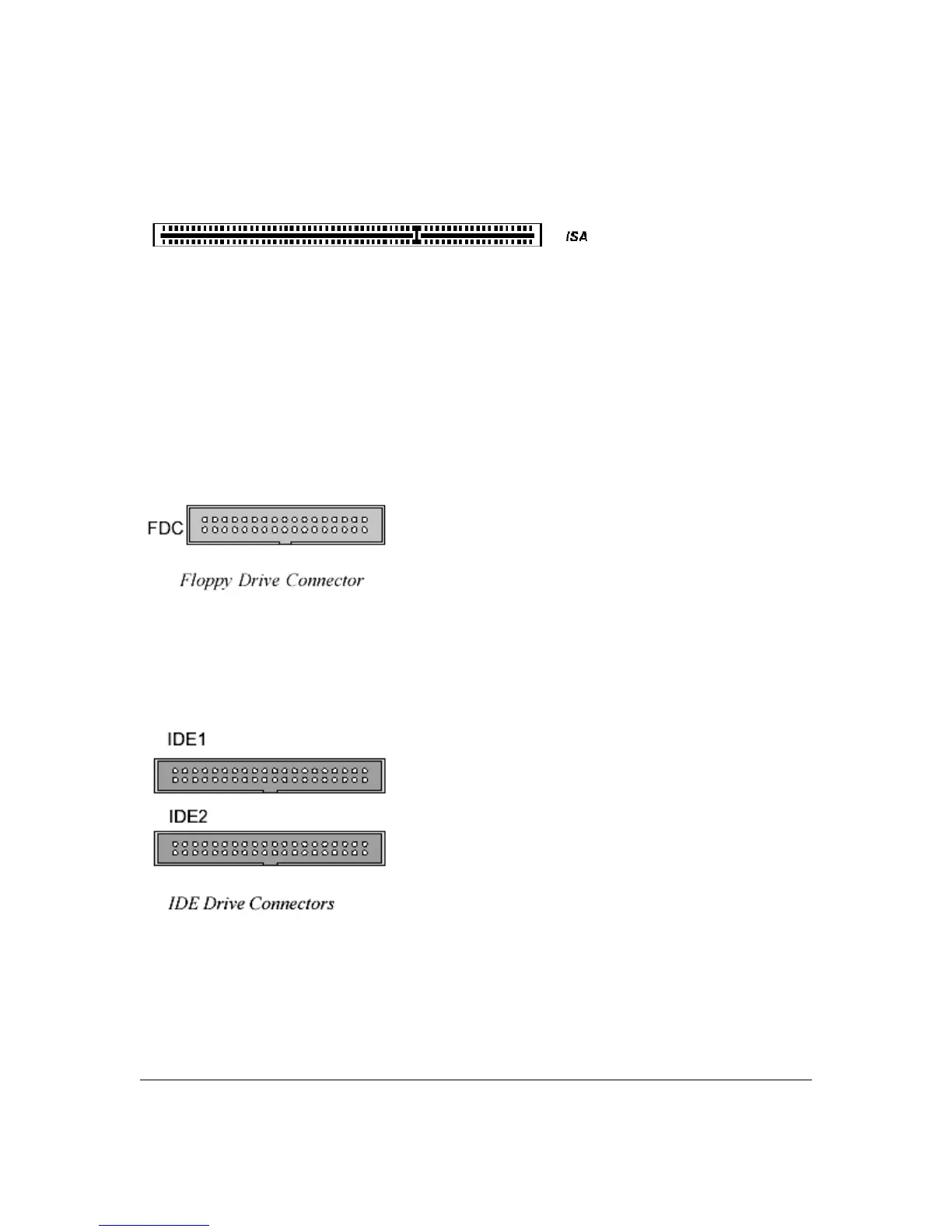 There are drive connectors on the motherboard for connecting IDE and floppy disk drives.