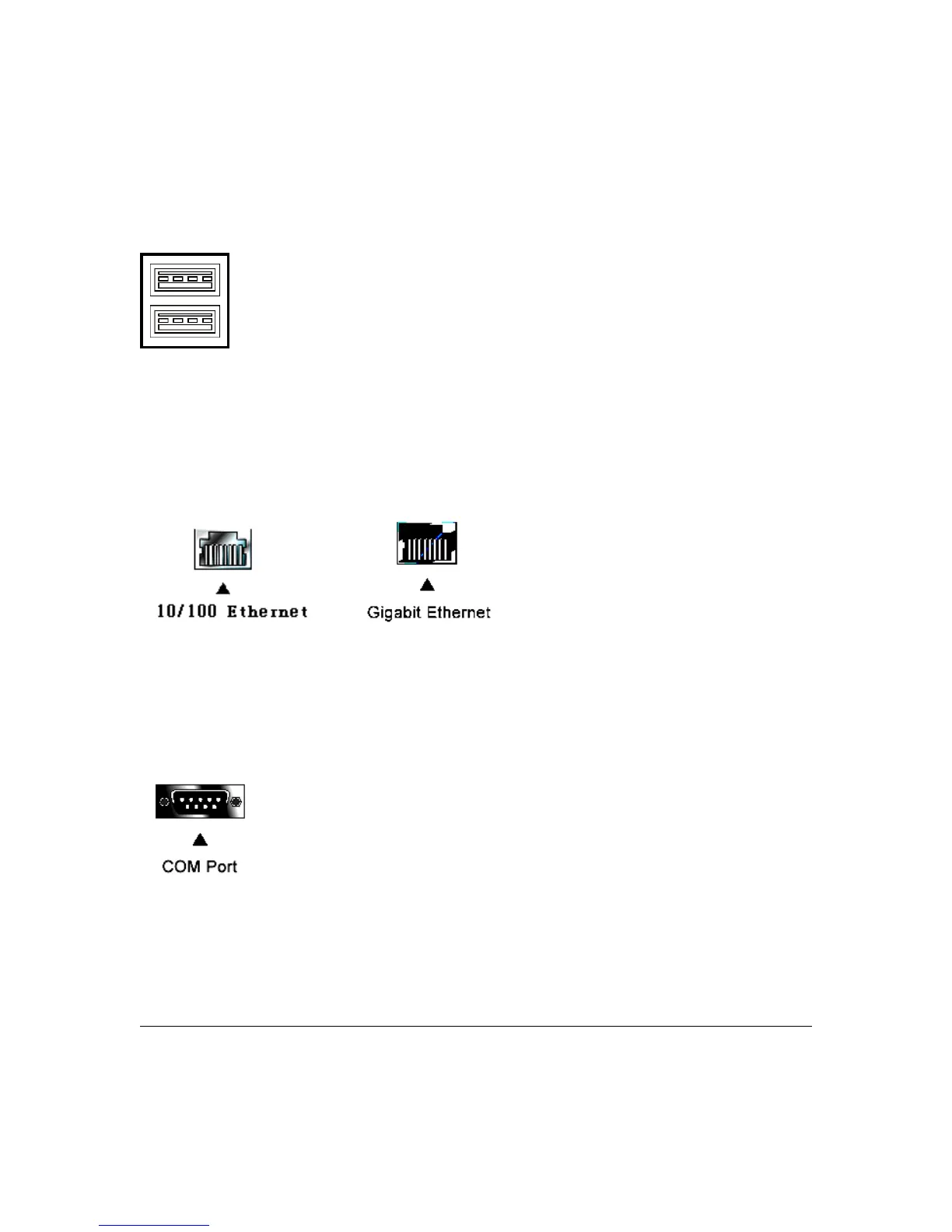 Gigabit Ethernet Port and 10/100 Ethernet Port are RJ-45 connectors for standard Cat 5 LAN