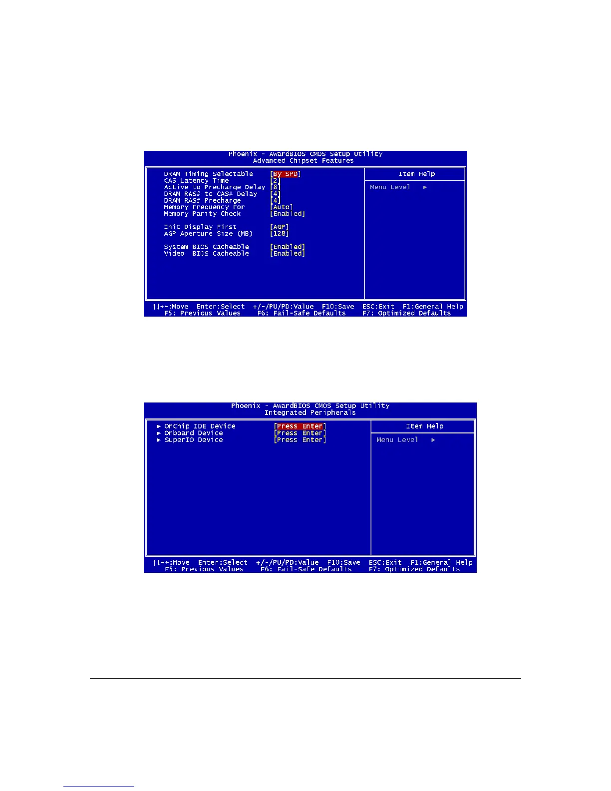 The Integrated Peripherals screen configures the peripheral features integrated onto the