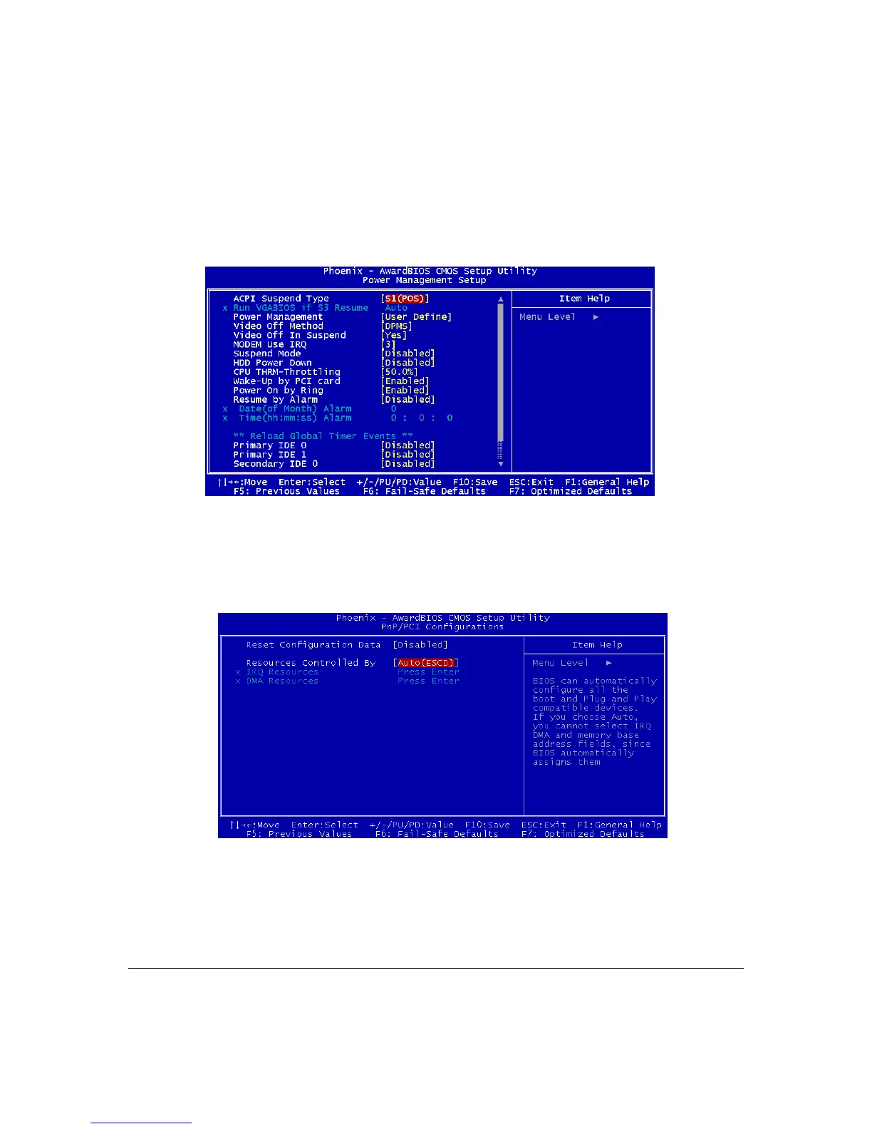 default is for BIOS control of these functions. Set Reset Configuration Data to Enabled if a