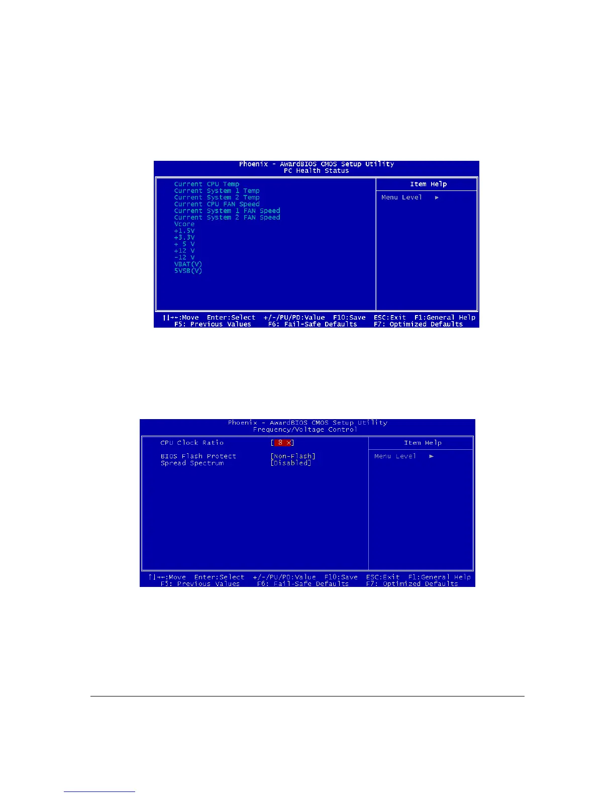 The Frequency/ Voltage Control screen configures CPU settings. Configuring CPU clock ratio