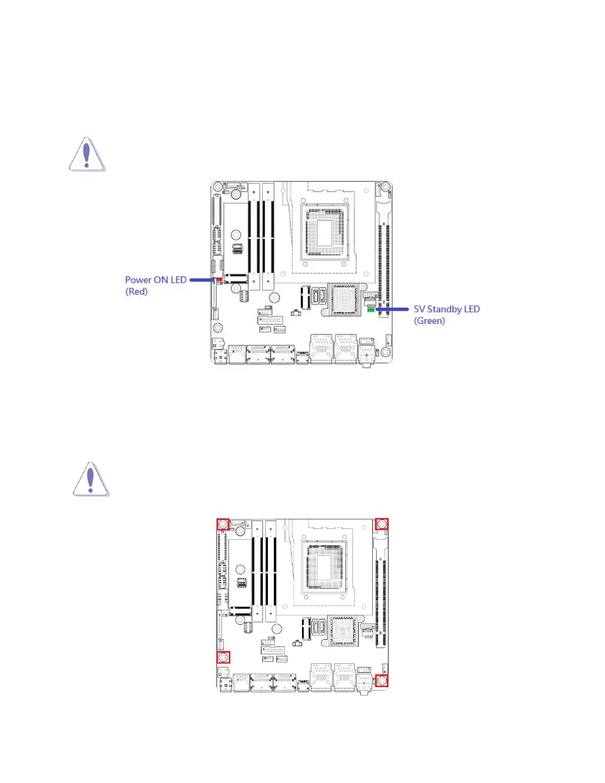Place the screws into the mounting holes indicated by red squares to secure the mainboard to