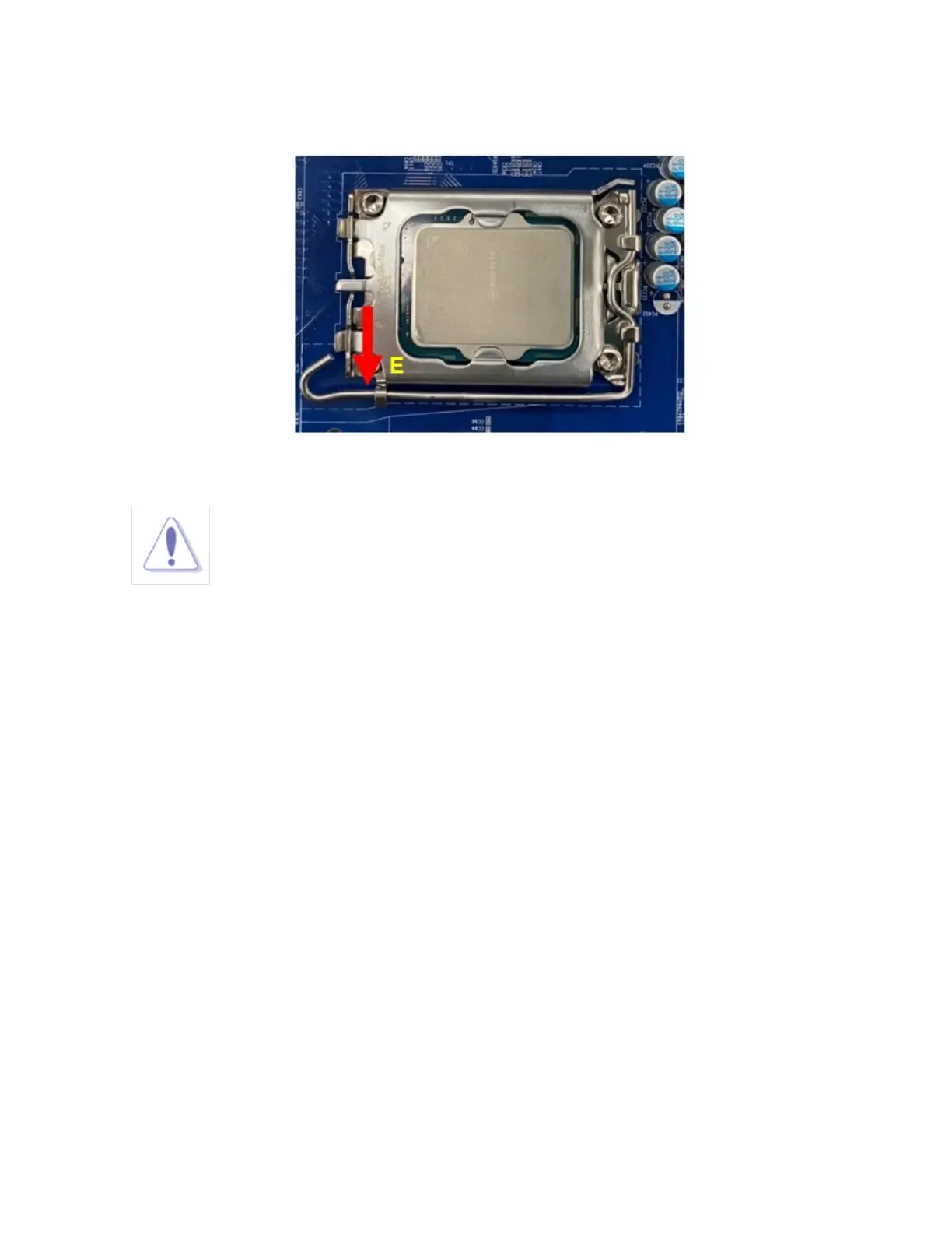 5. Pull back the load lever down, then push the load lever (E) until it snaps into the retention tab.