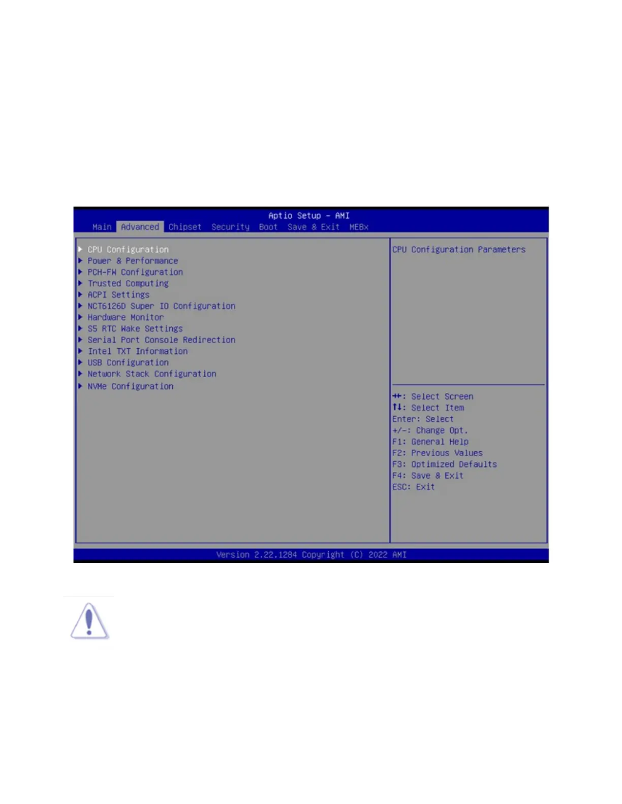 highlighting it using the <Arrow> keys. All Advanced BIOS Setup options are described in this