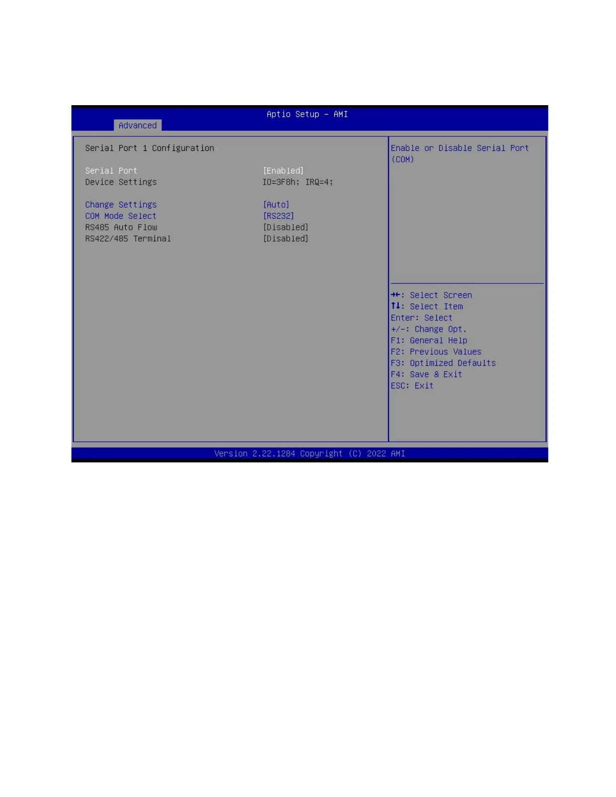 BCM MX680RD - Serial Port 1 Configuration; Serial Port [Enabled]