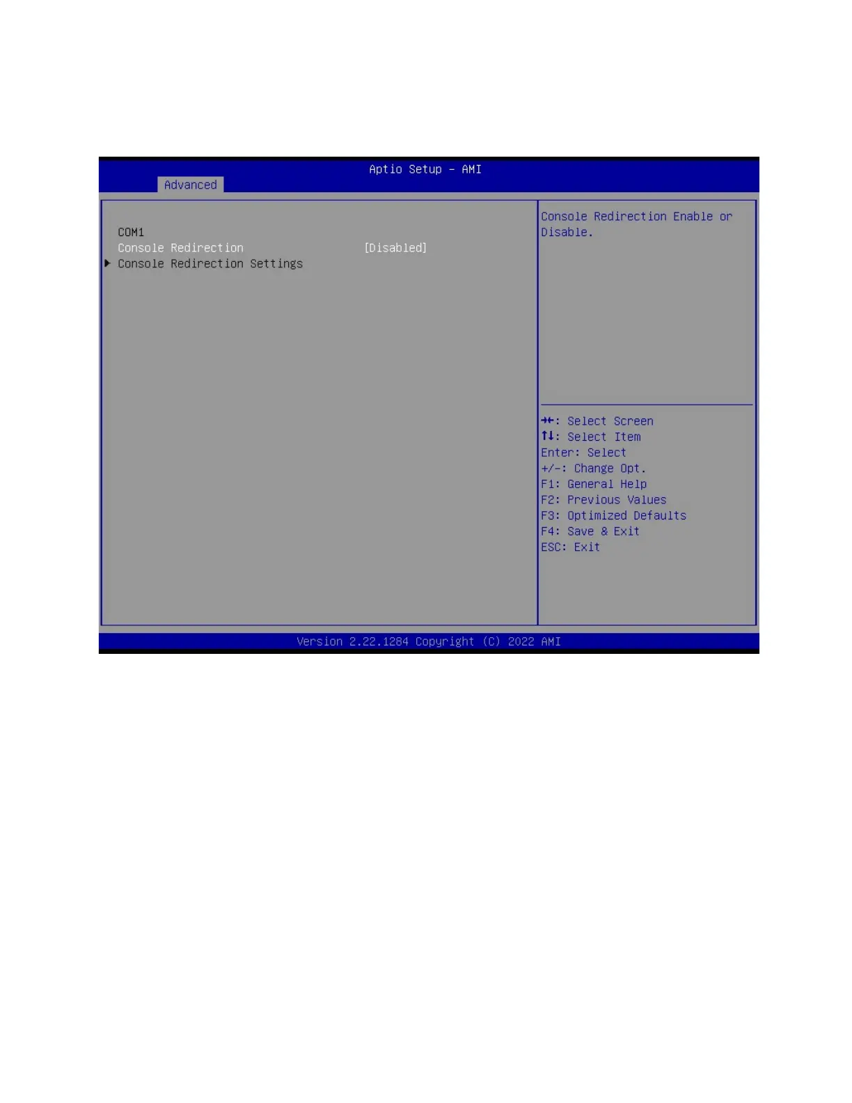 BCM MX680RD - Serial Port Console Redirection; Console Redirection [Disabled]