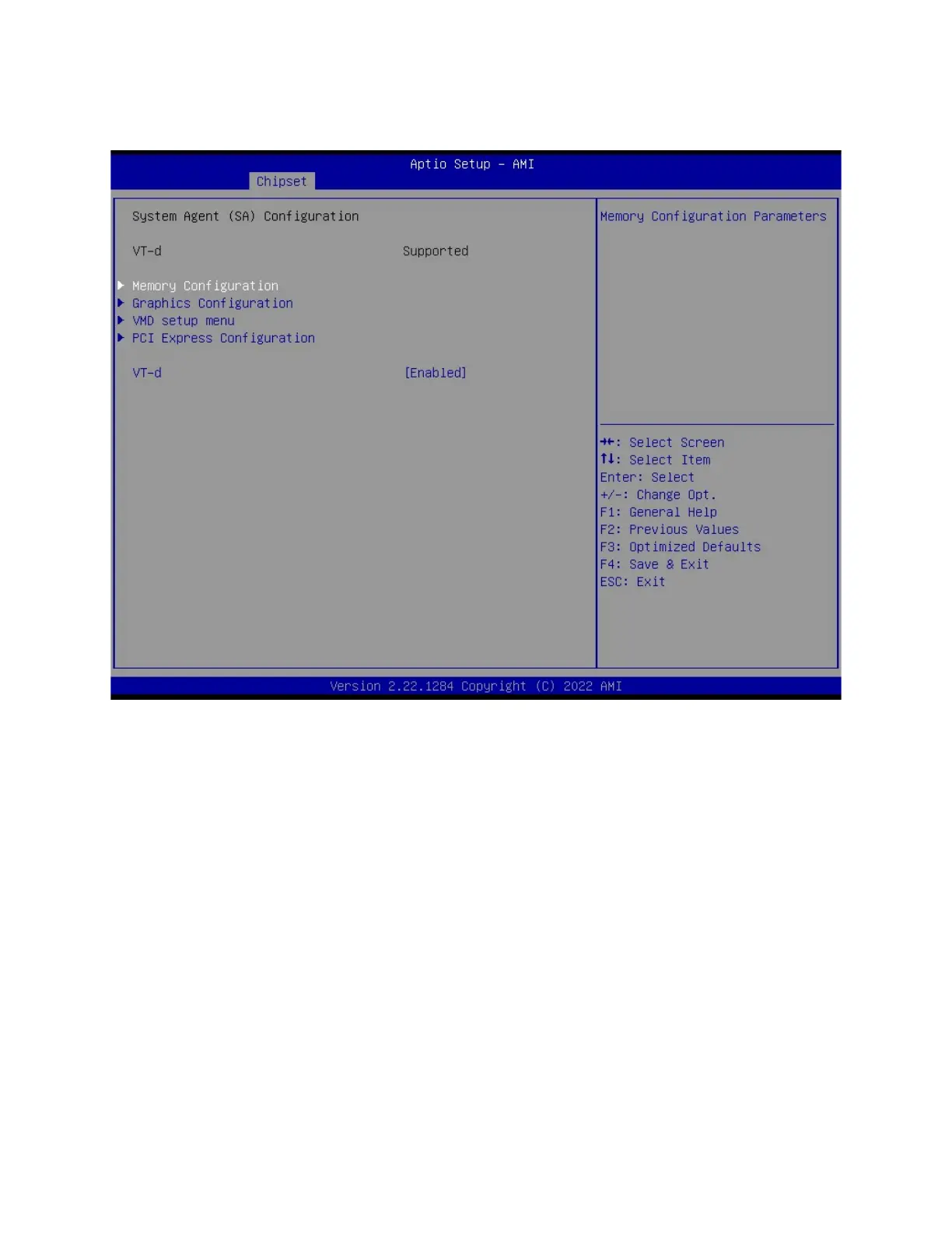 BCM MX680RD - System Agent (SA) Configuration; VT-D [Enabled]; Memory Configuration