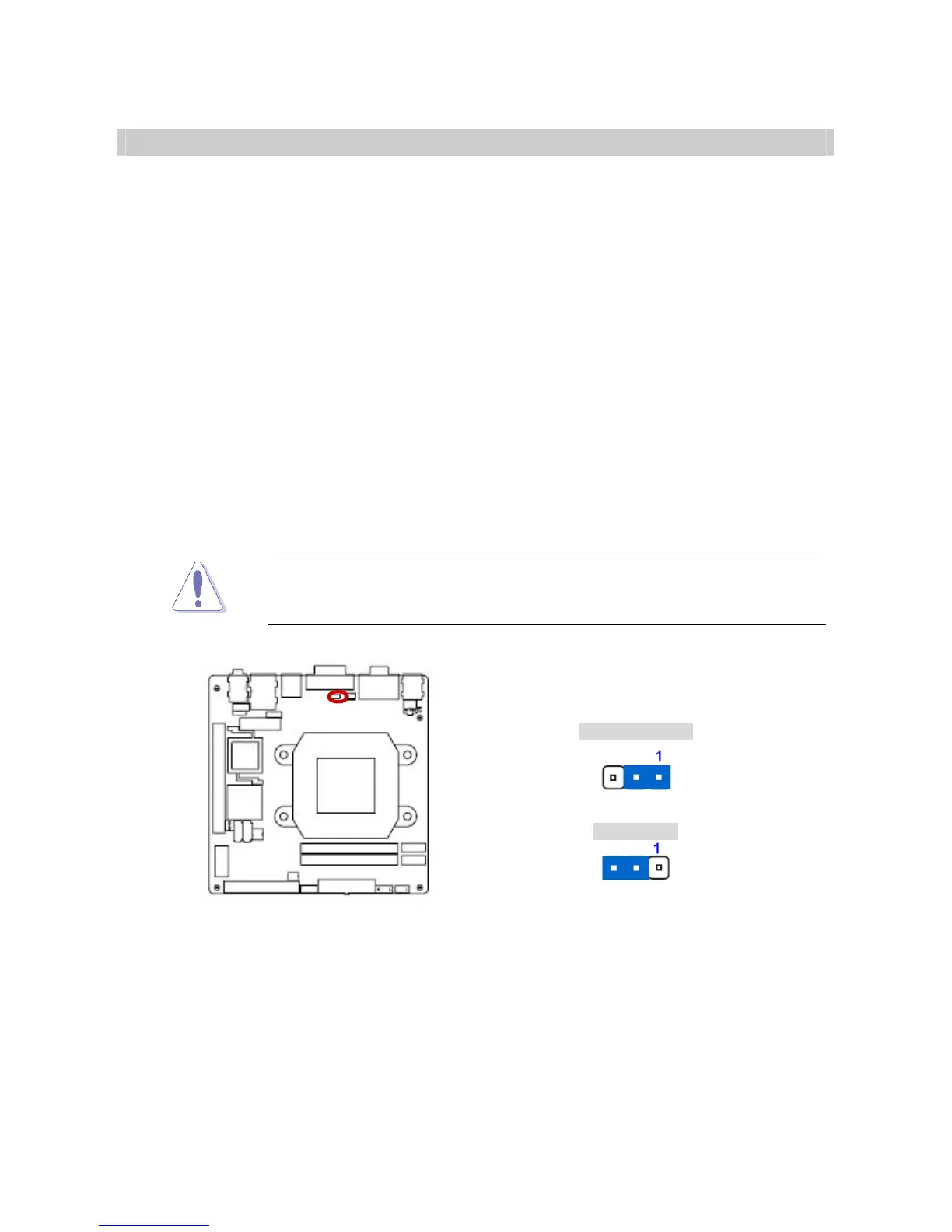 jumper default position. Removing the cap will cause system boot